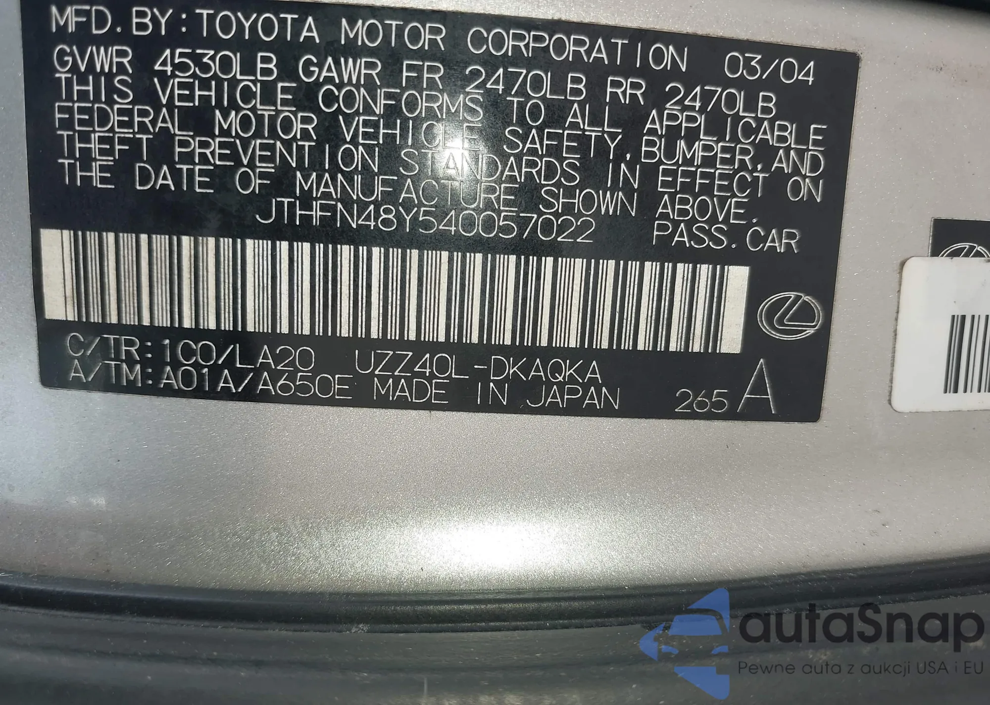VIN: JTHFN48Y540057022