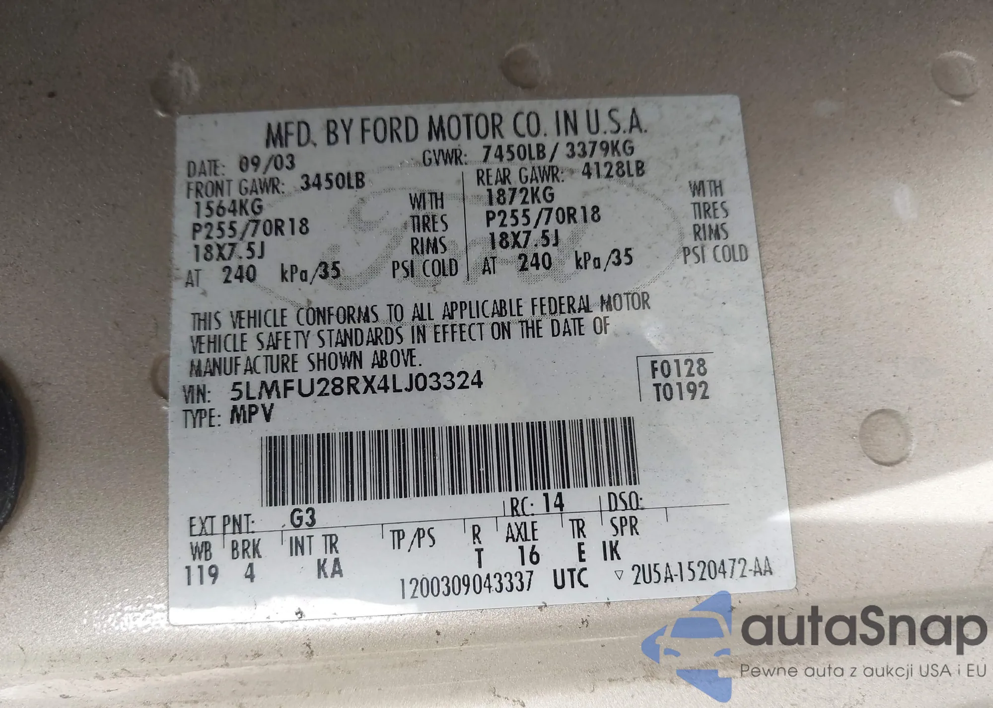 • VIN: 5LMFU28RX4LJ03324