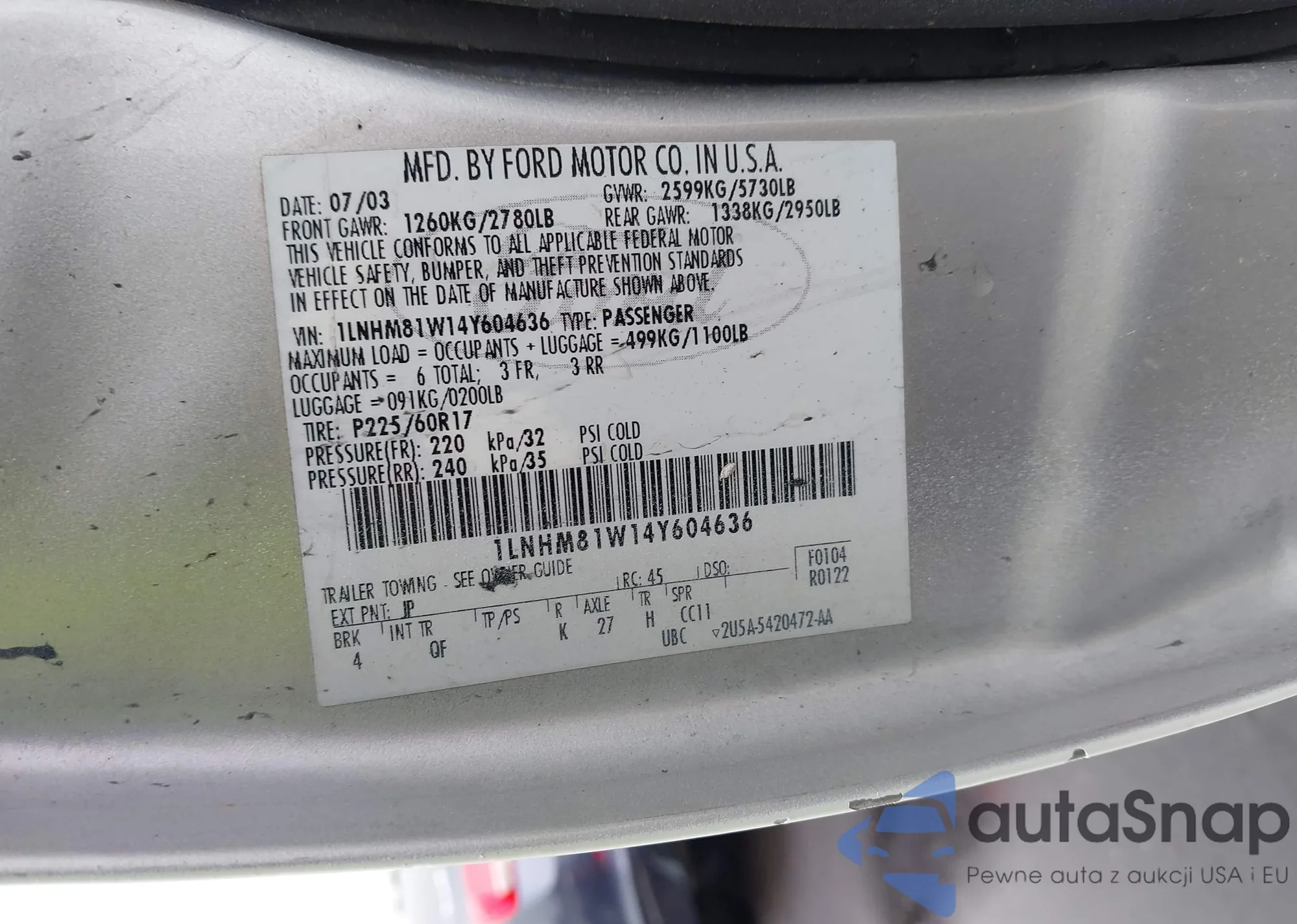 • VIN: 1LNHM81W14Y604636