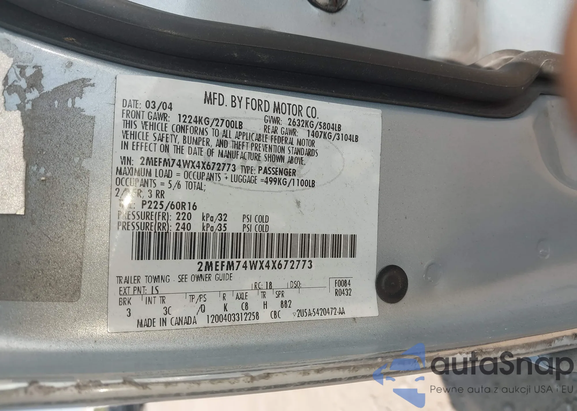 Автомобиль Mercury Grand Marquis 2004 (VIN 2MEFM74WX4X672773) ранее не участвовал в торгах. Документы чистые, пробег соответствует или ниже среднего по рынку. Продаётся страховой компанией — рекомендуем покупку. Доставка в порт займет около 6–8 недель.
