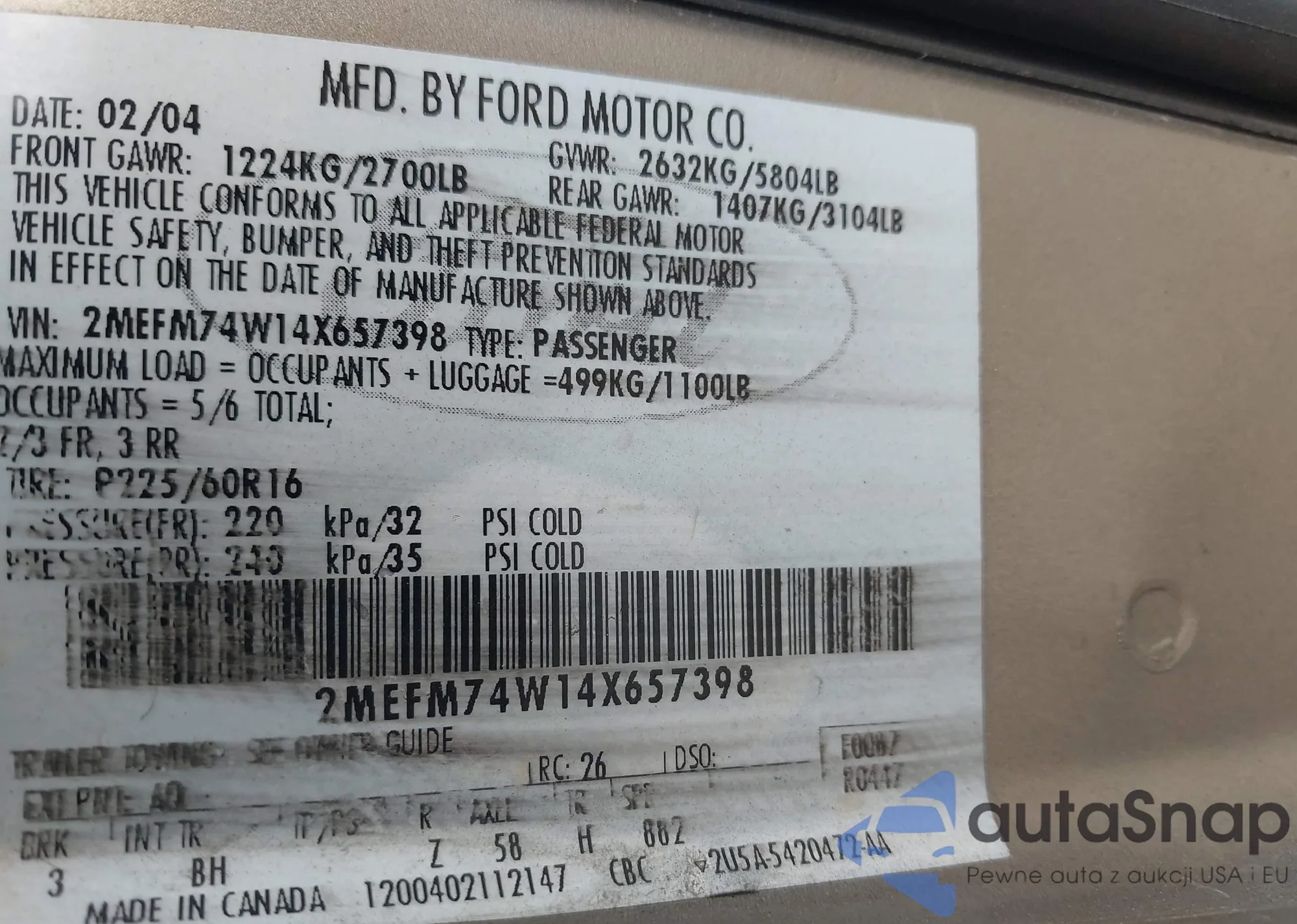 VIN: 2MEFM74W14X657398