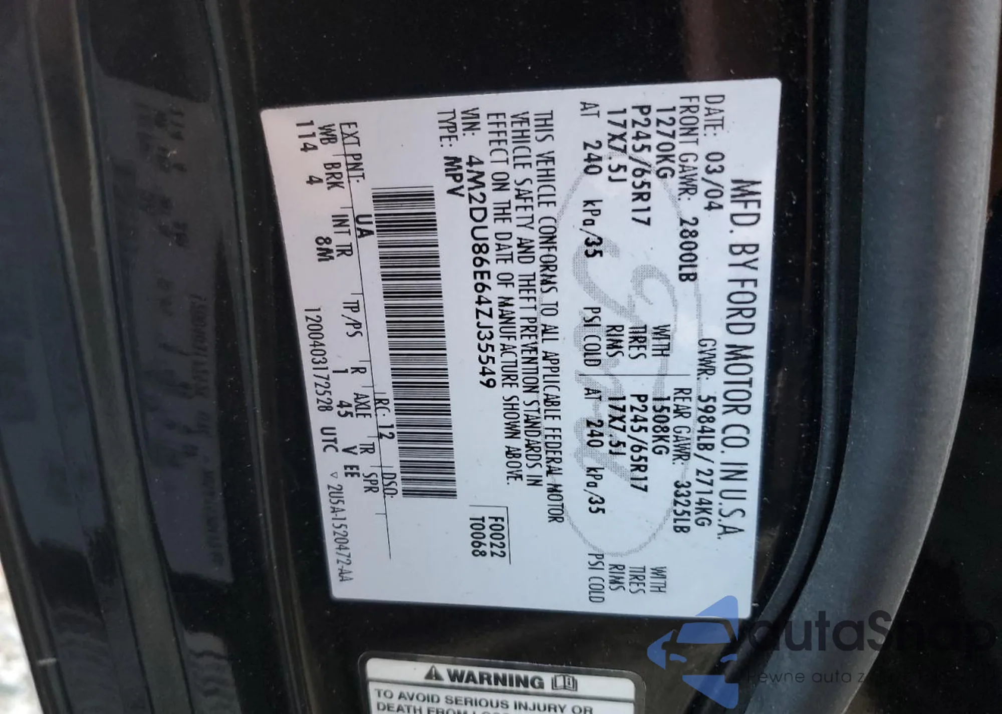 Автомобиль Mercury Mountaineer 2004 (VIN 4M2DU86E64ZJ35549) продаётся непроверенным продавцом. Рекомендуем проверить отчет Carfax и подтвердить возможность регистрации перед покупкой.