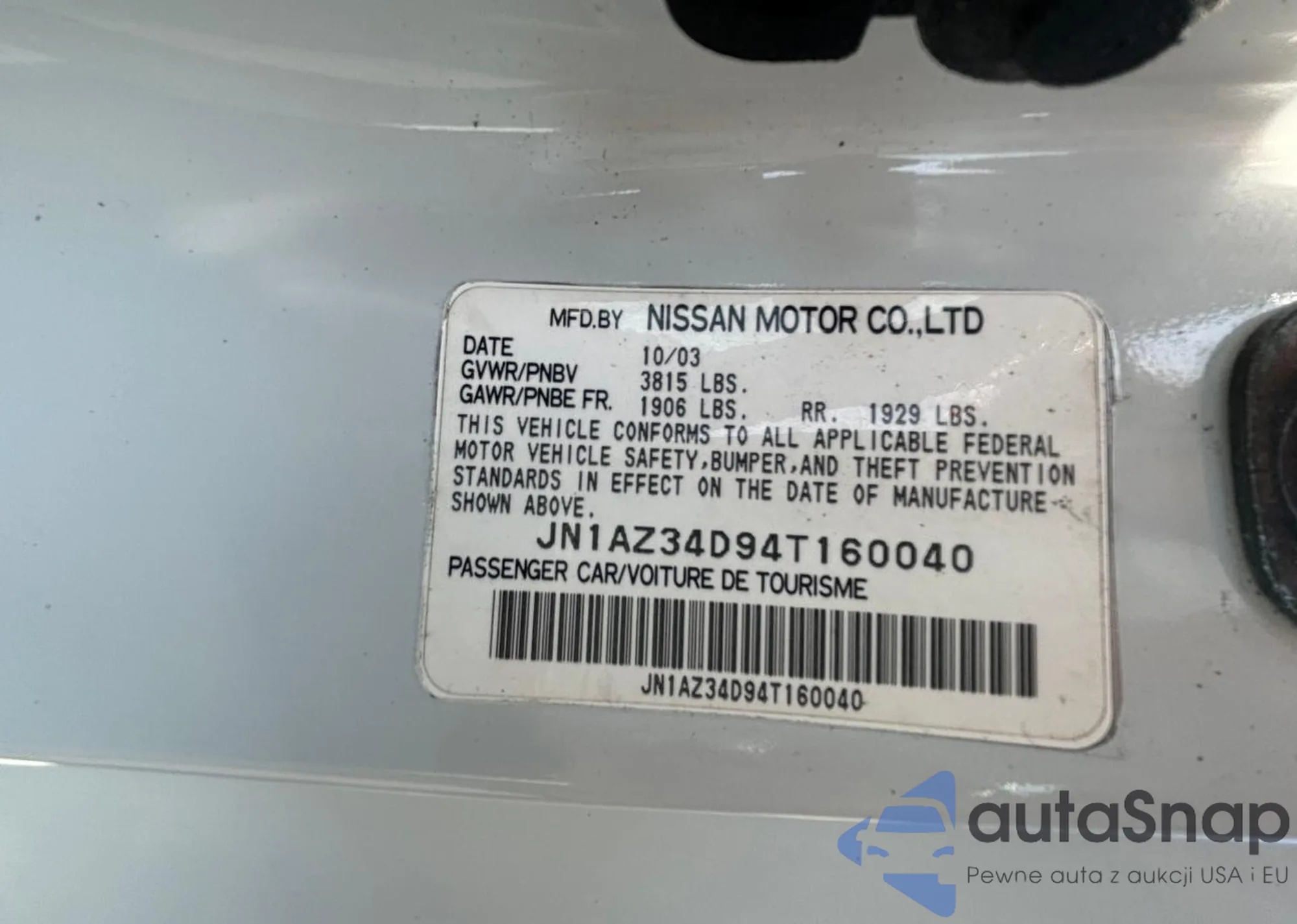 VIN: JN1AZ34D94T160040
