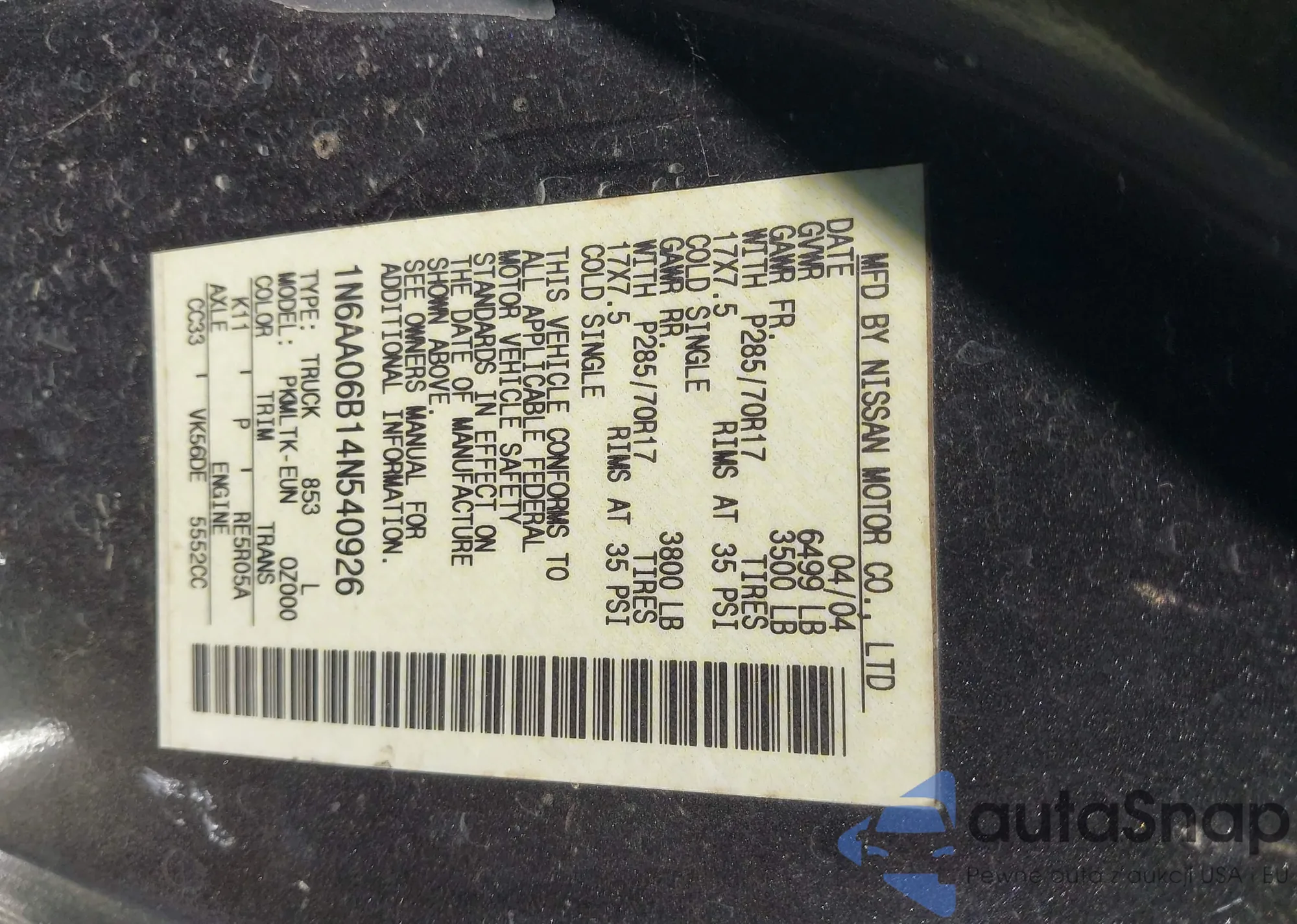 VIN: 1N6AA06B14N540926