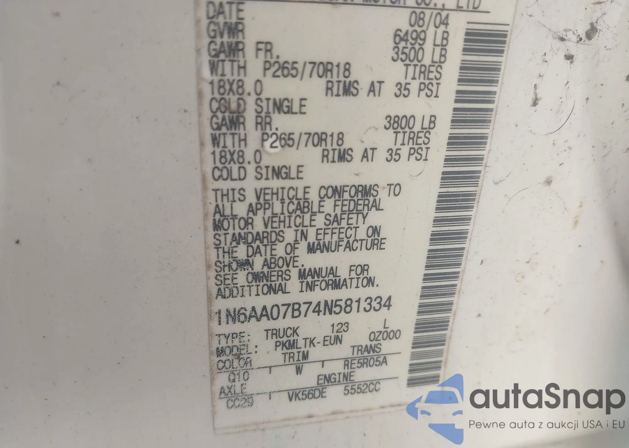 VIN: 1N6AA07B74N581334