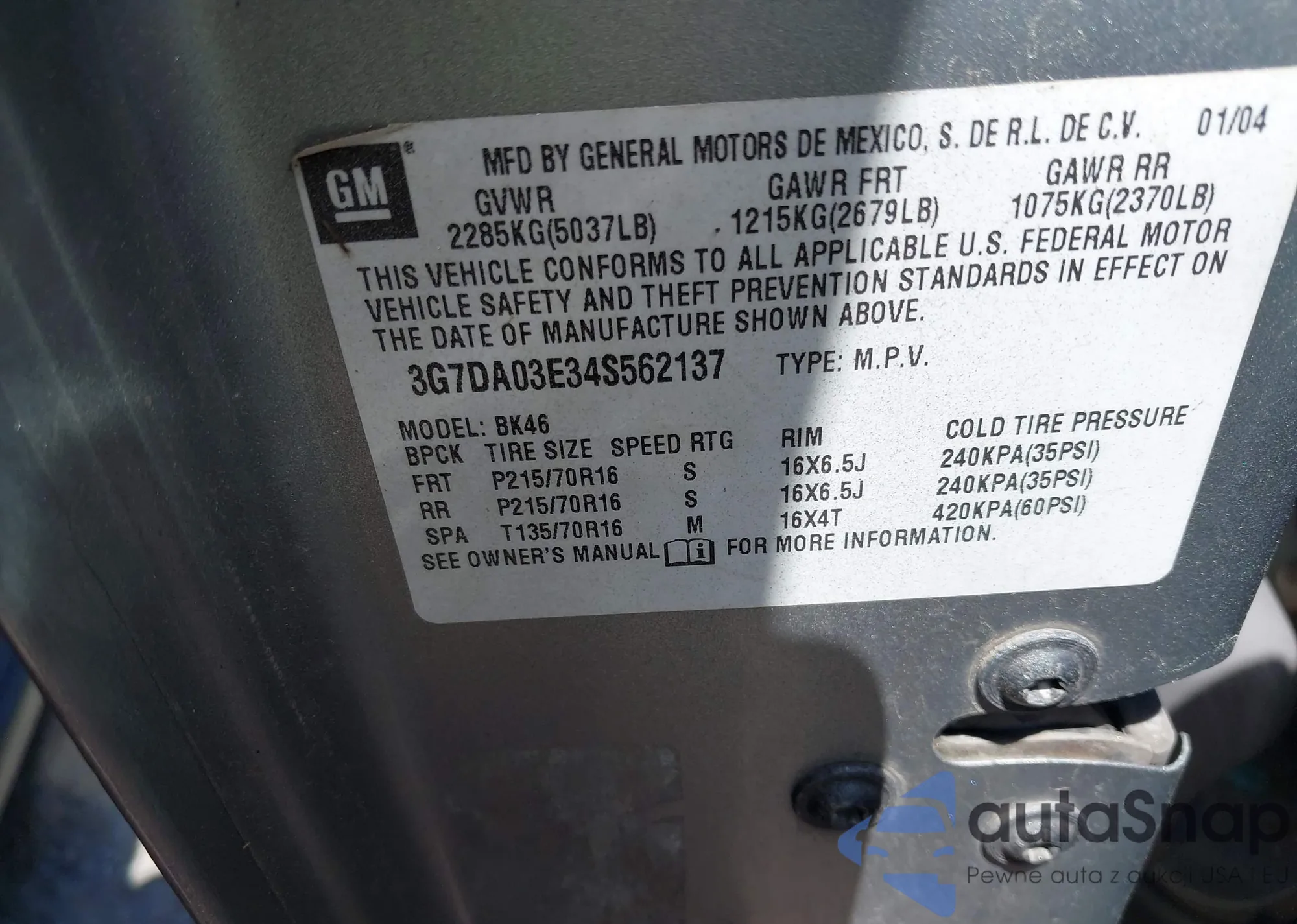 VIN: 3G7DA03E34S562137
