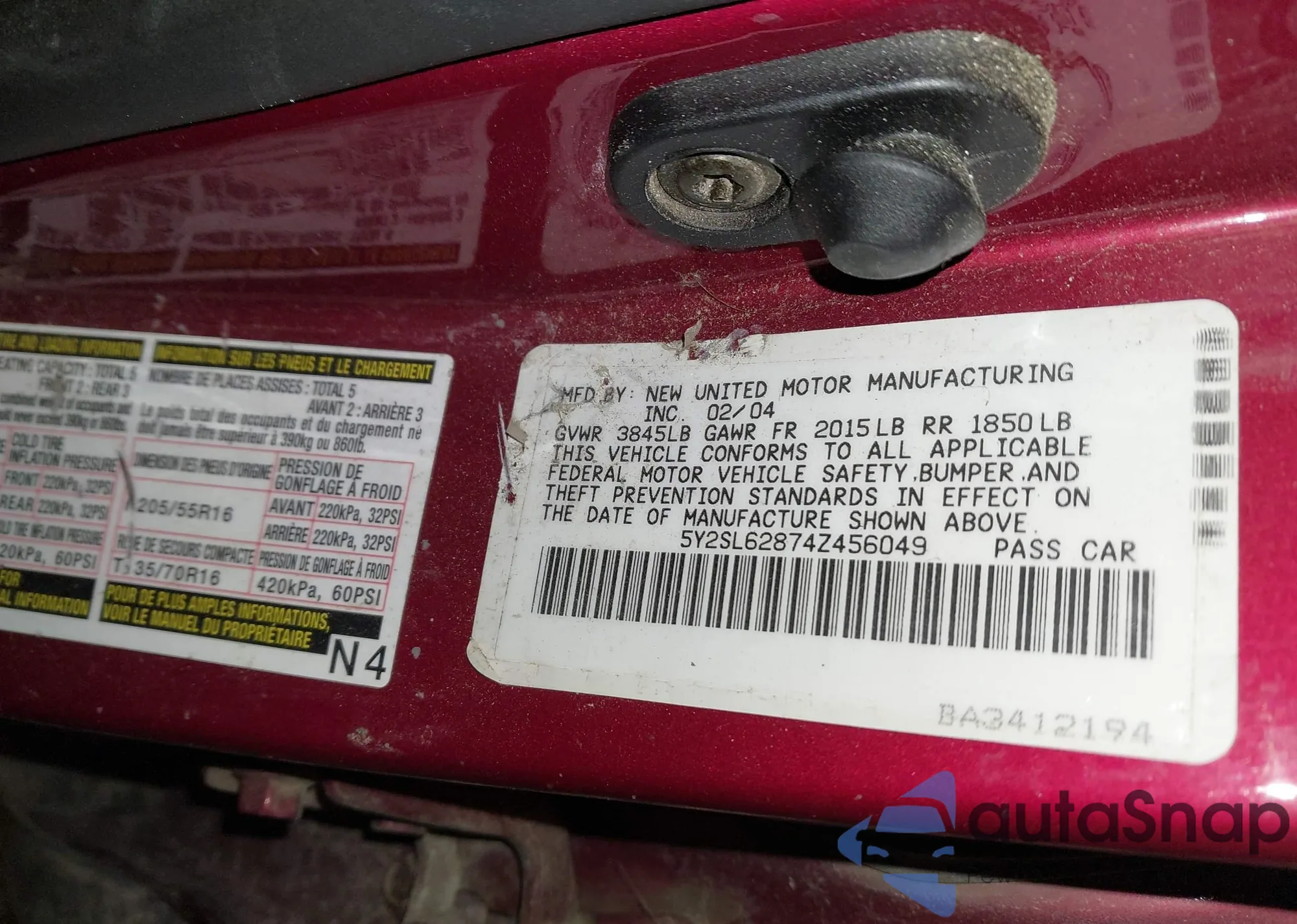 • VIN: 5Y2SL62874Z456049