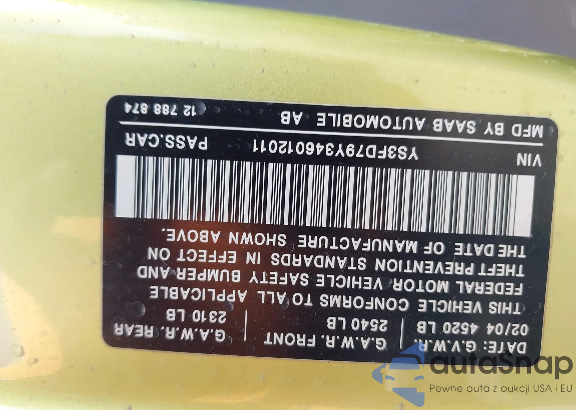 VIN: YS3FD79Y346012011