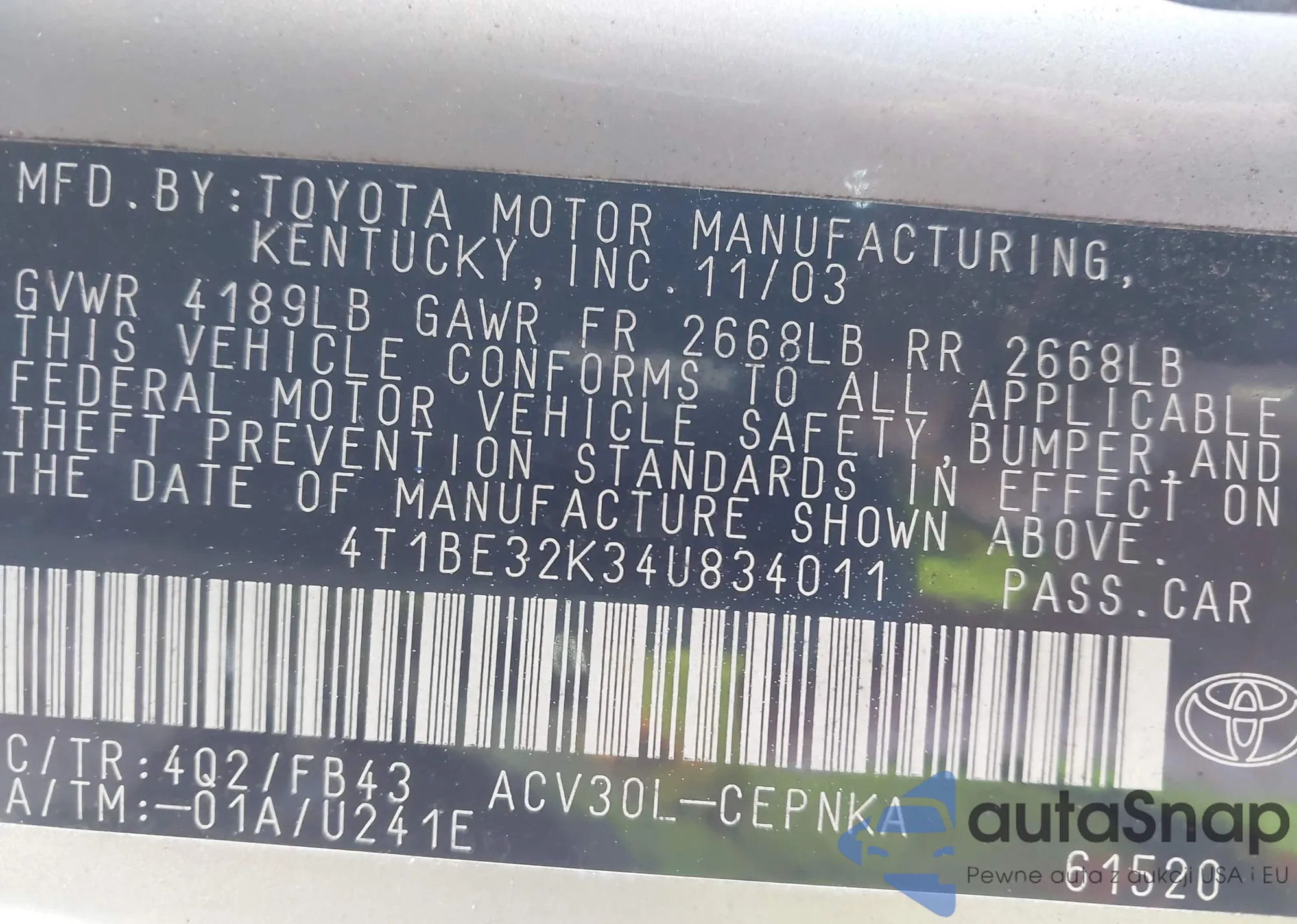 VIN: 4T1BE32K34U834011