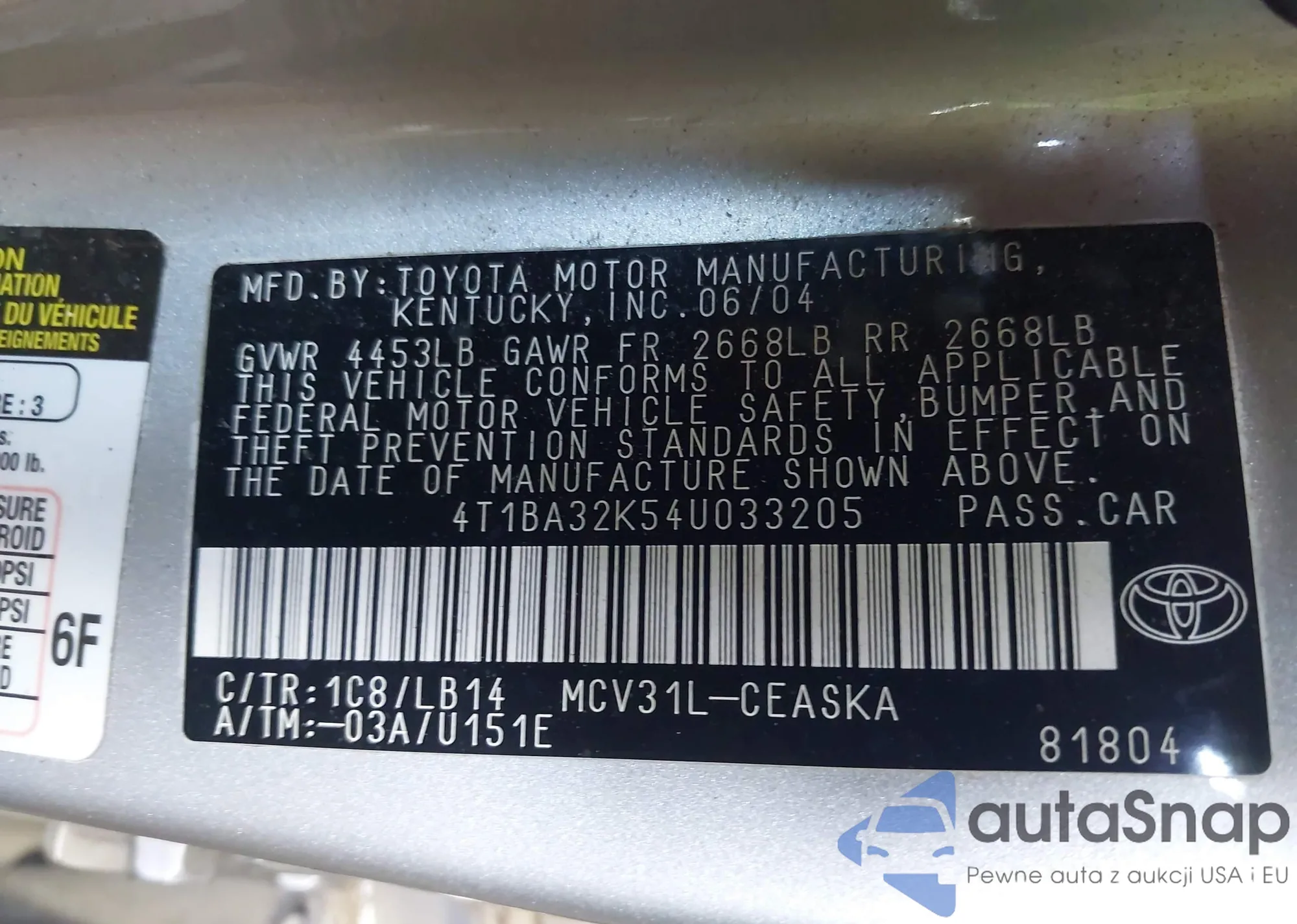 VIN: 4T1BA32K54U033205
