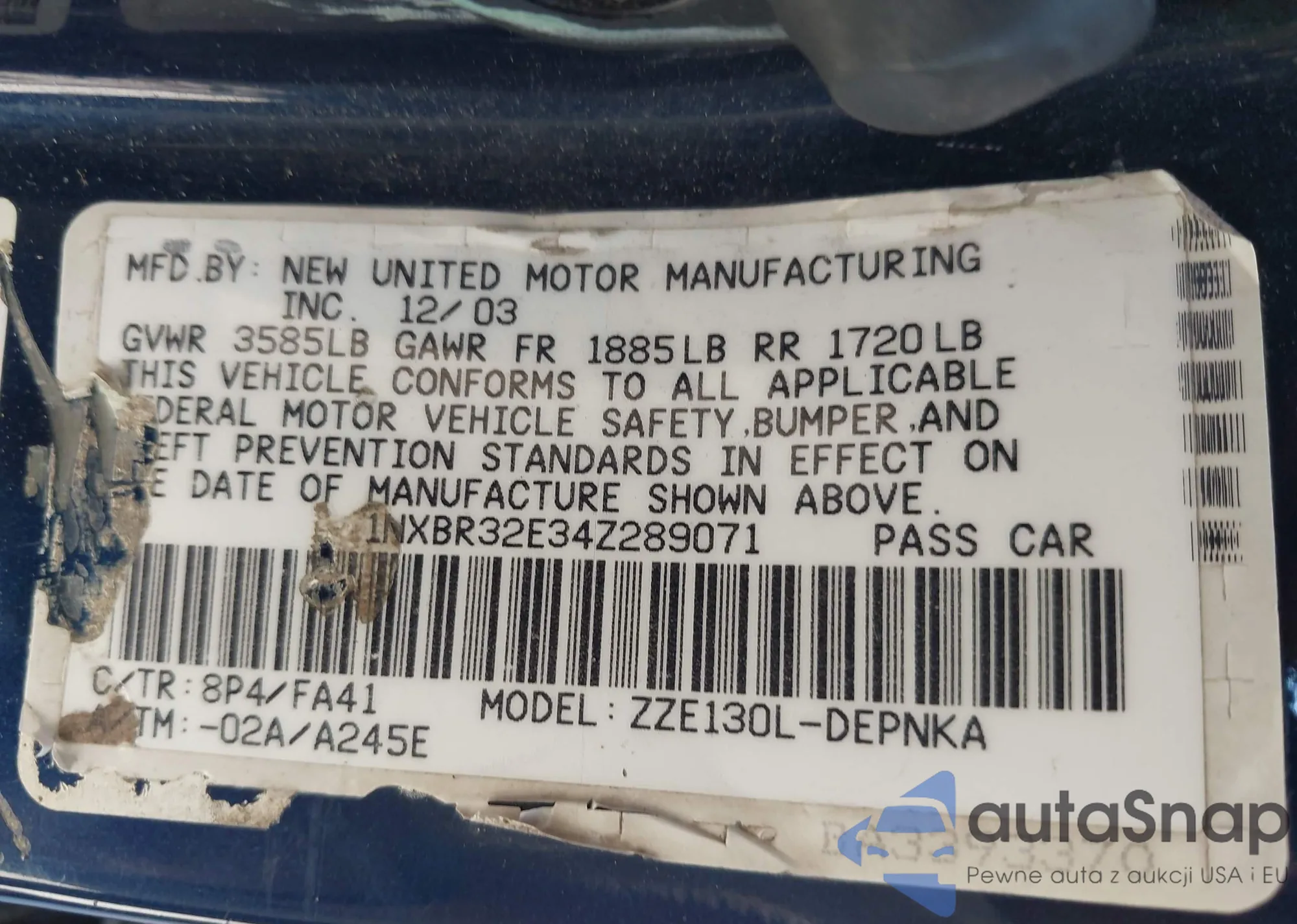 VIN: 1NXBR32E34Z289071