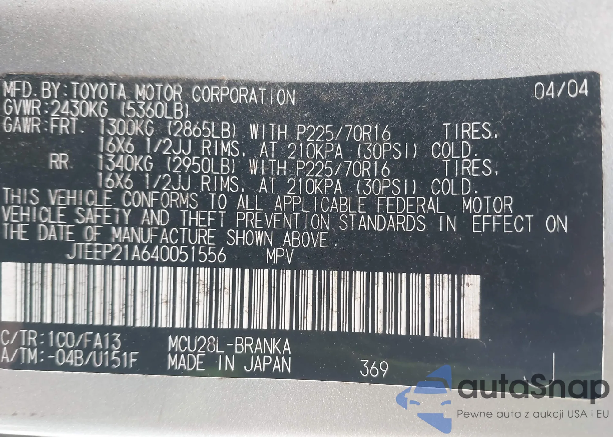 VIN: JTEEP21A640051556