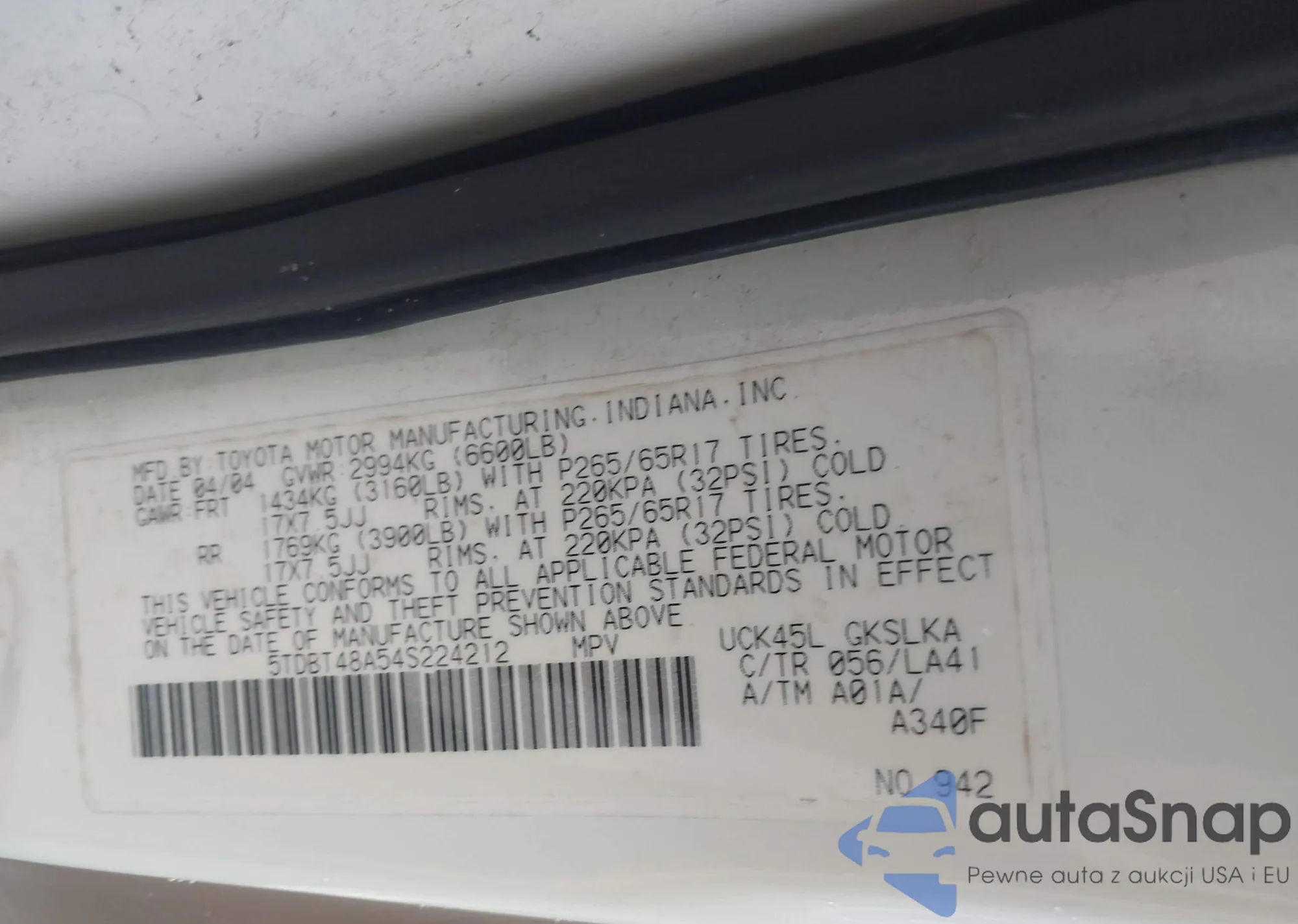 VIN: 5TDBT48A54S224212