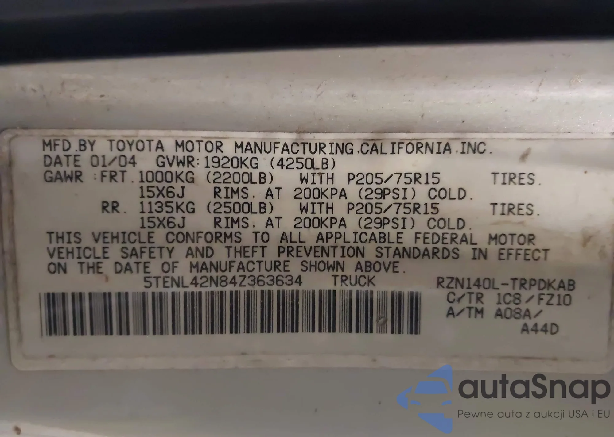 VIN: 5TENL42N84Z363634