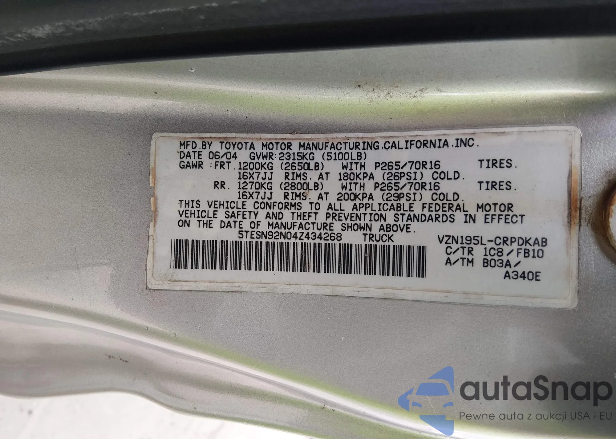 VIN: 5TESN92N04Z434268