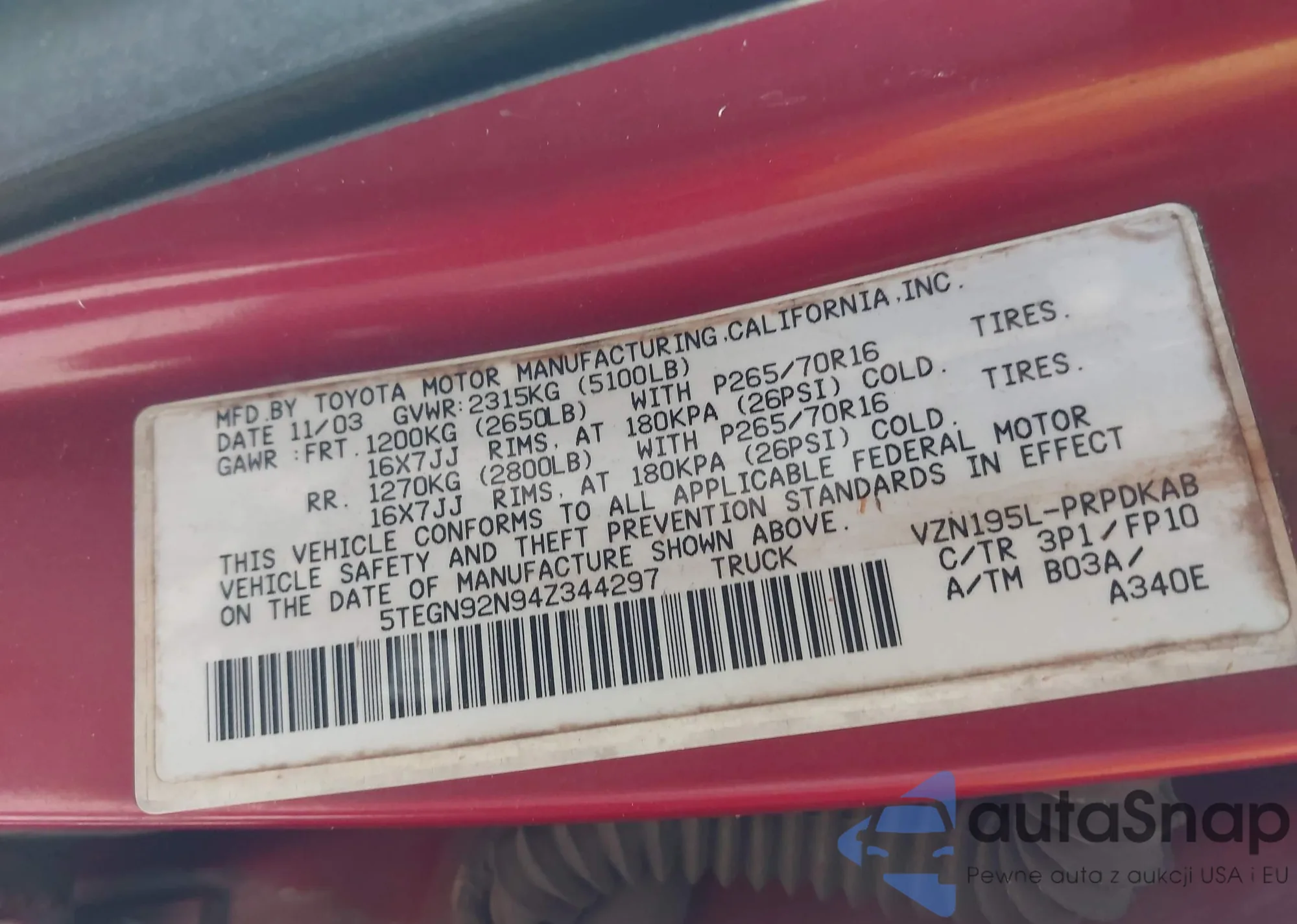 VIN: 5TEGN92N94Z344297