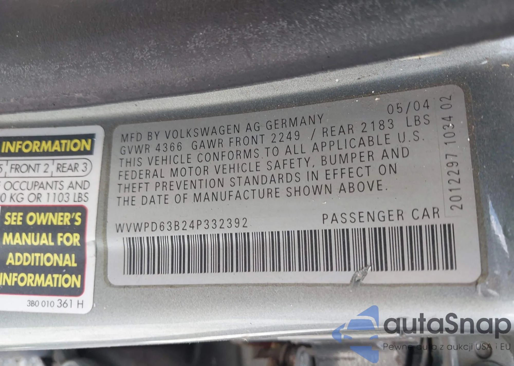 VIN: WVWPD63B24P332392