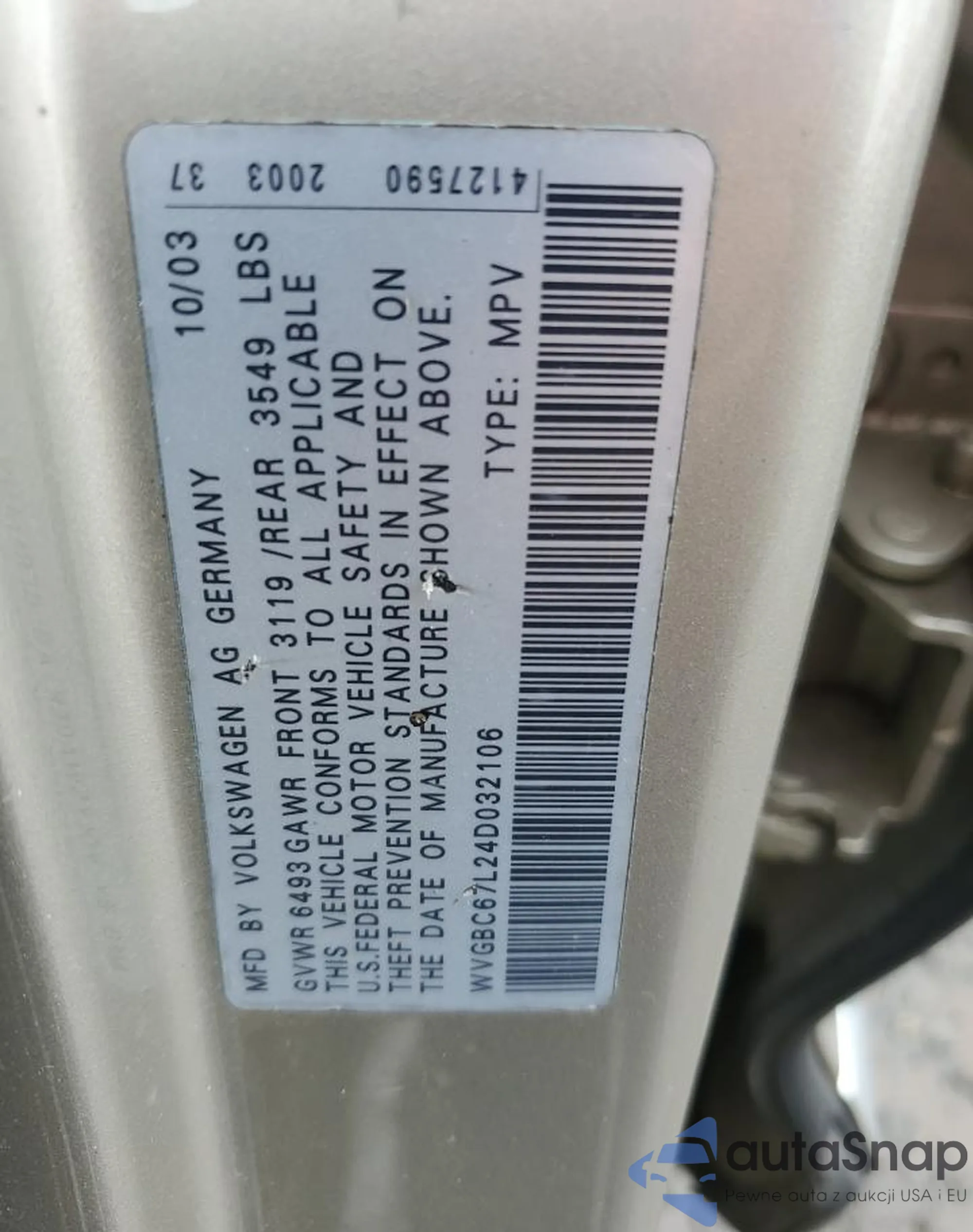 VIN: WVGBC67L24D032106