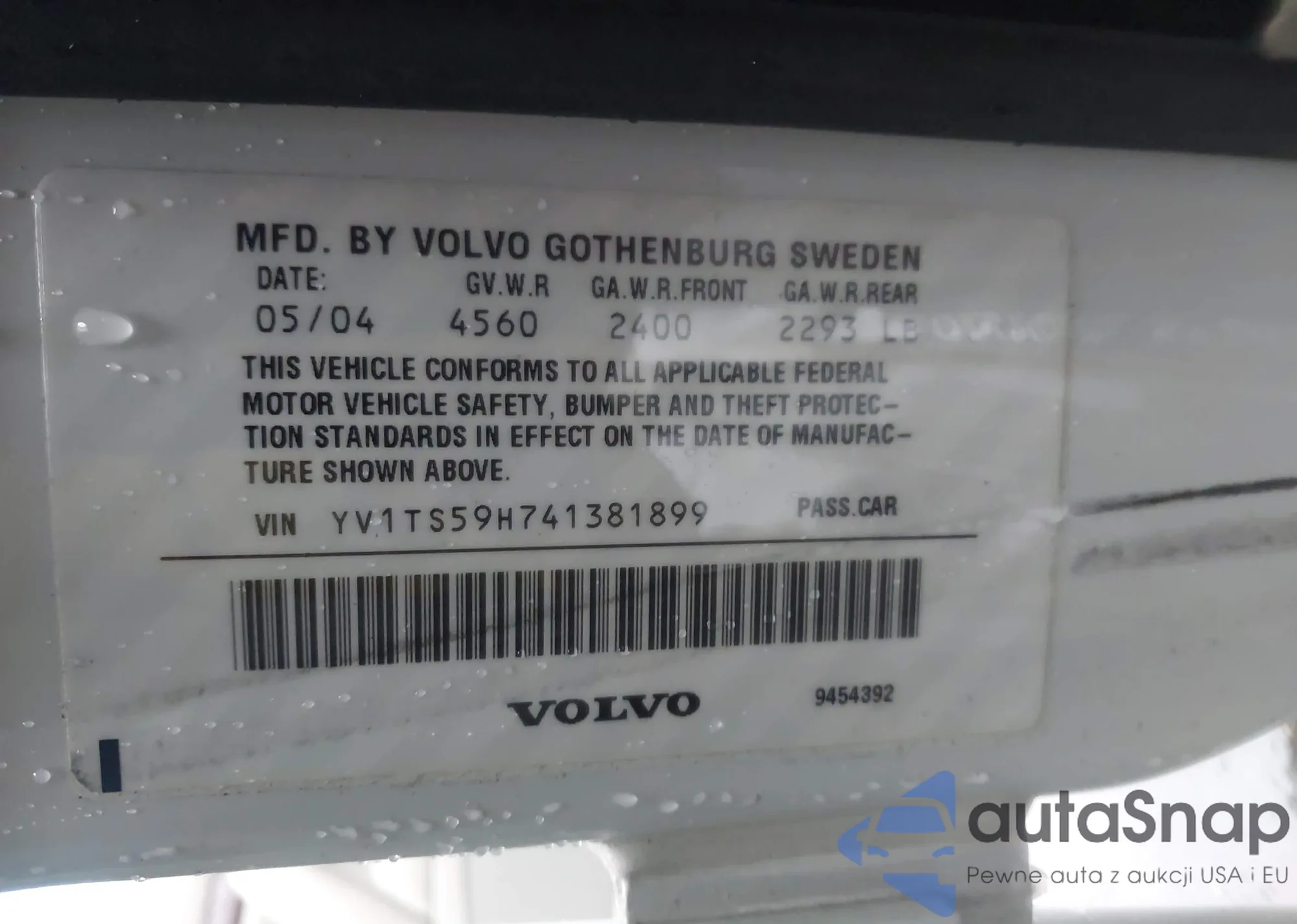 VIN: YV1TS59H741381899