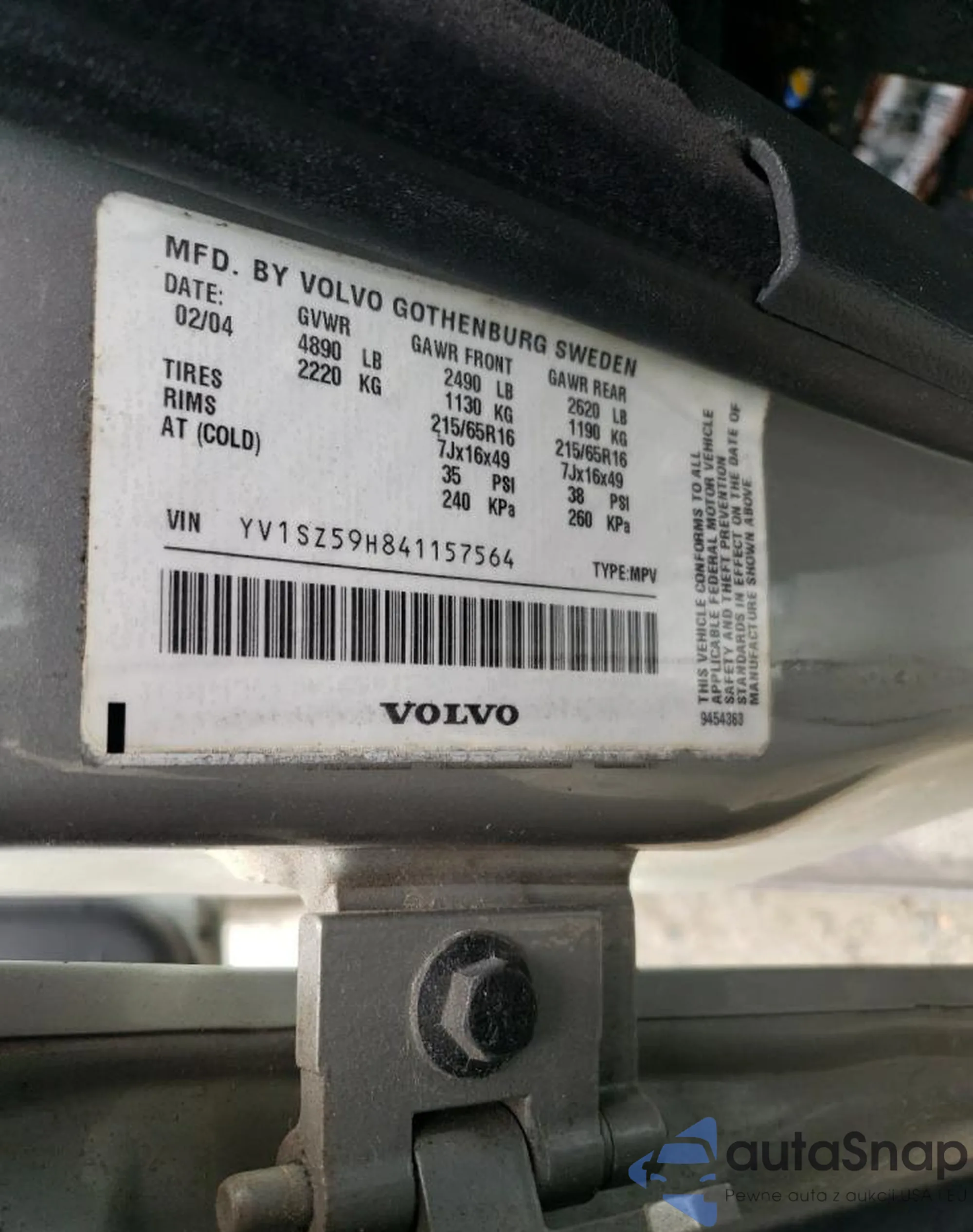 VIN: YV1SZ59H841157564