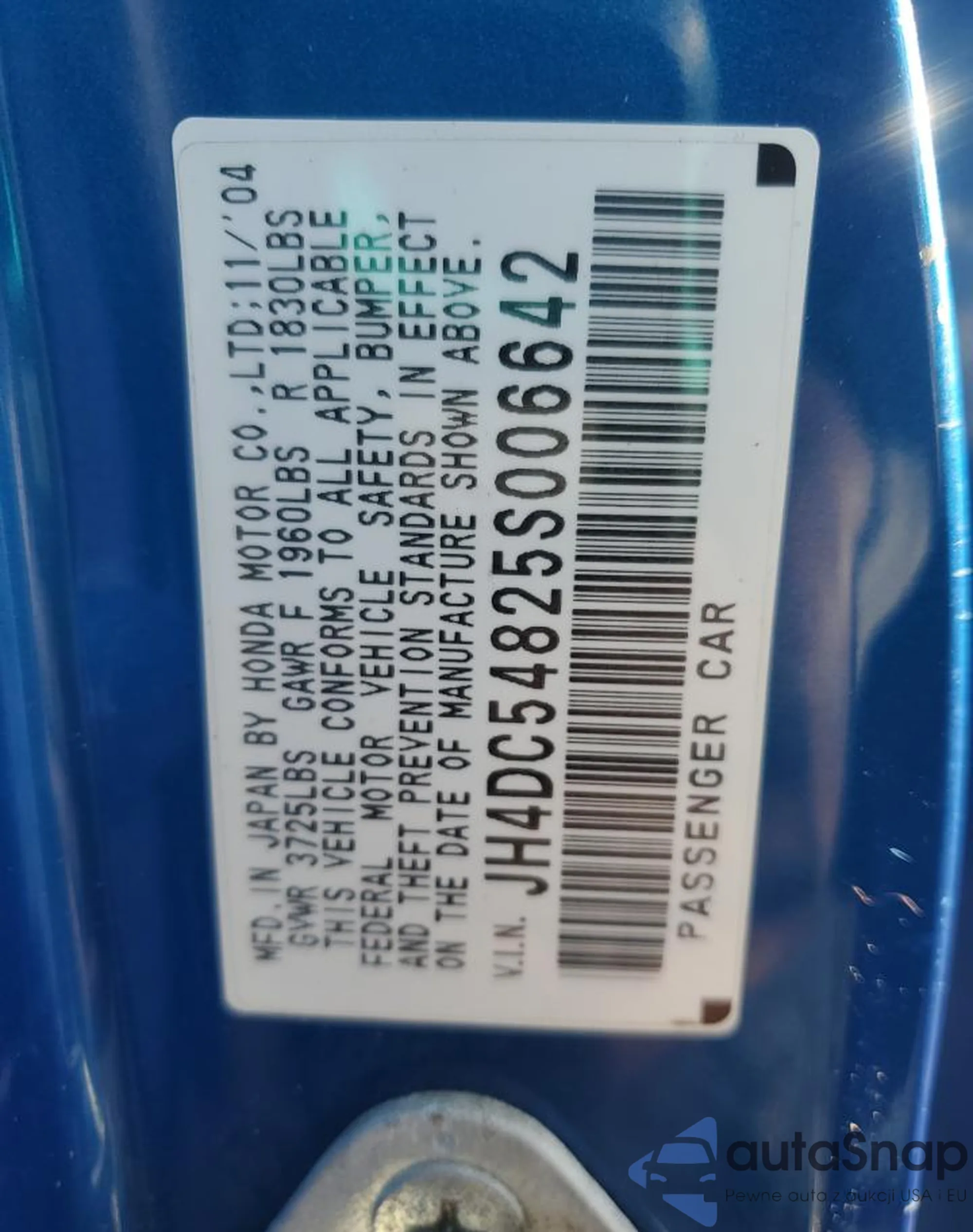 VIN: JH4DC54825S006642