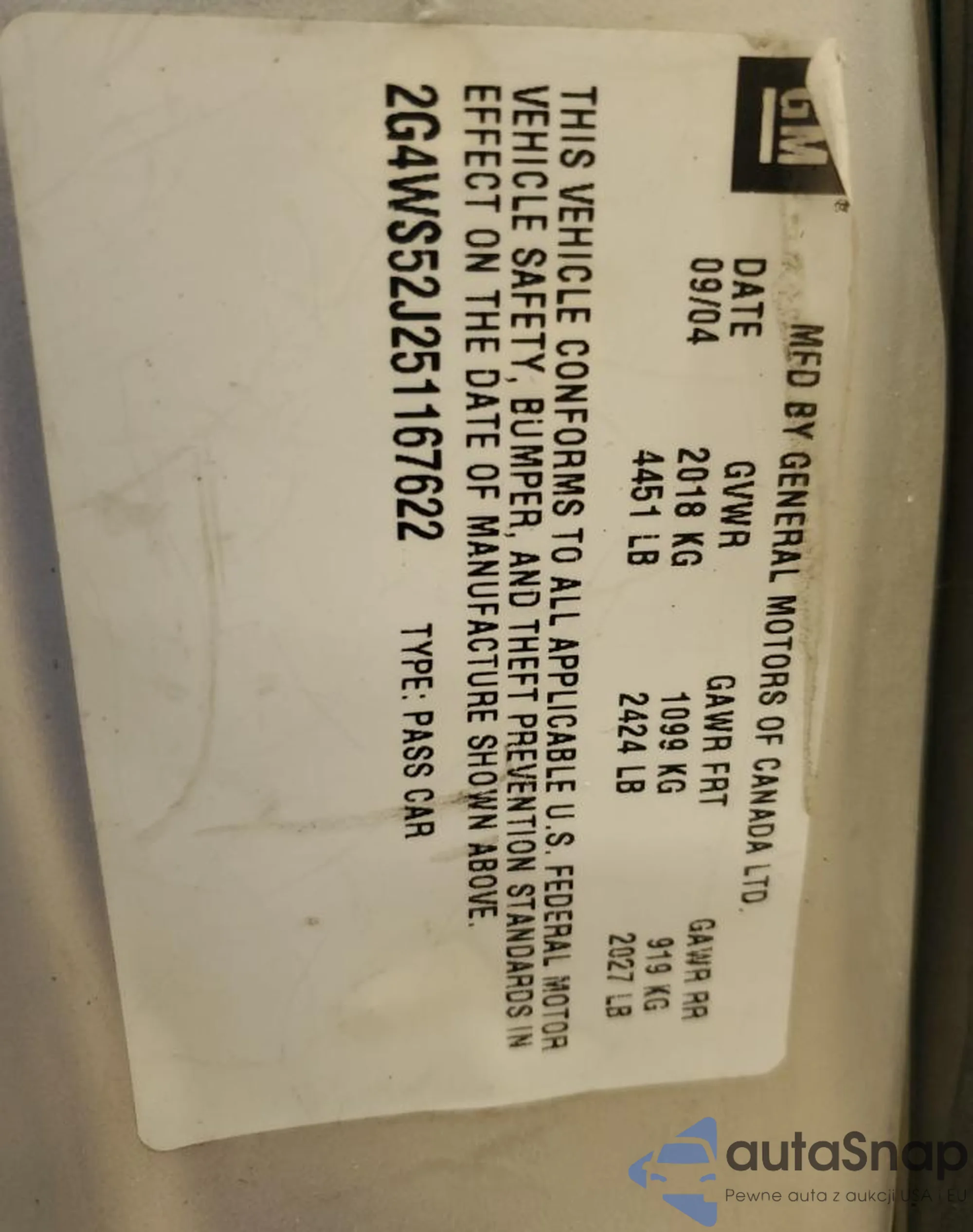 VIN: 2G4WS52J251167622
