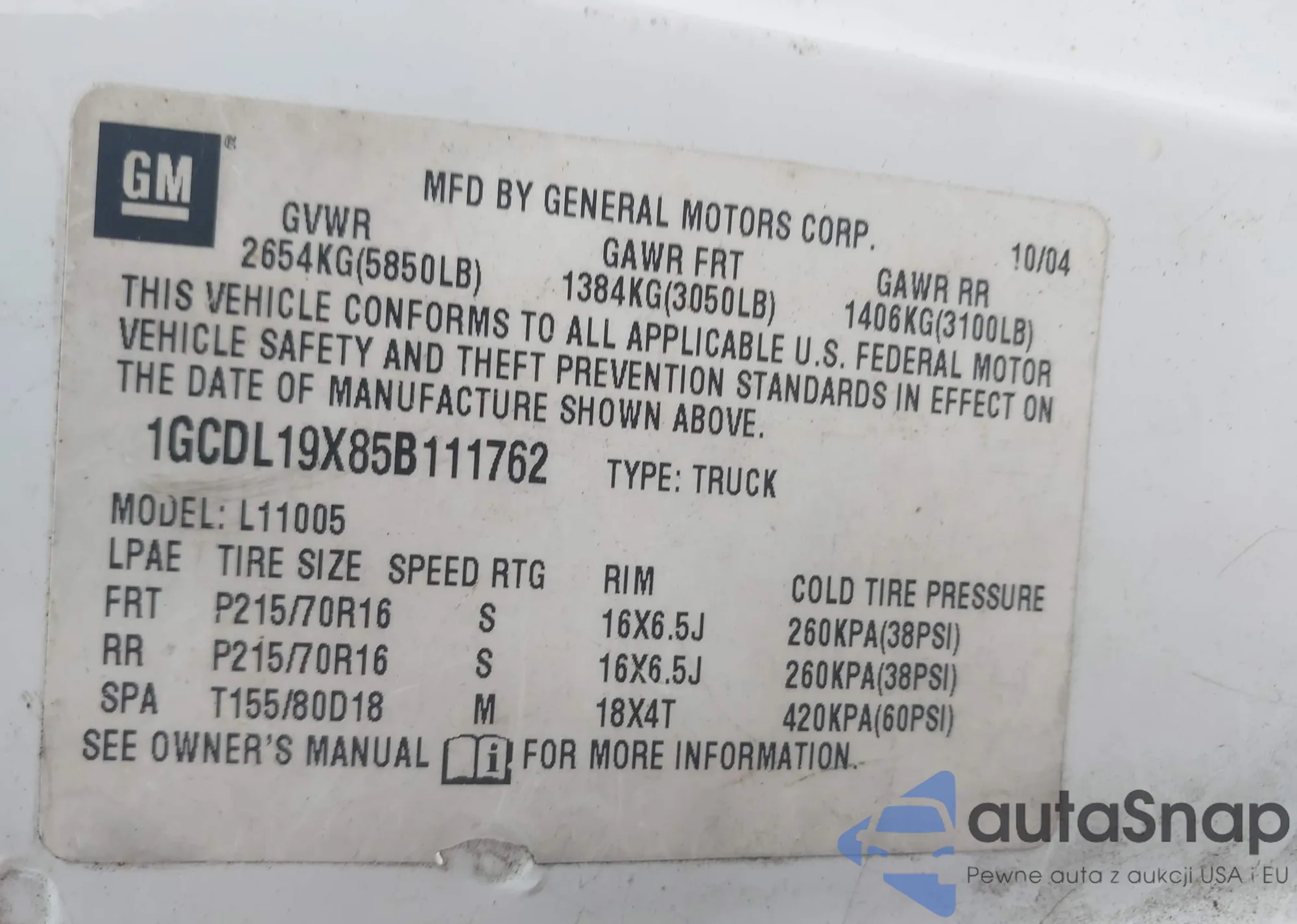 VIN: 1GCDL19X85B111762