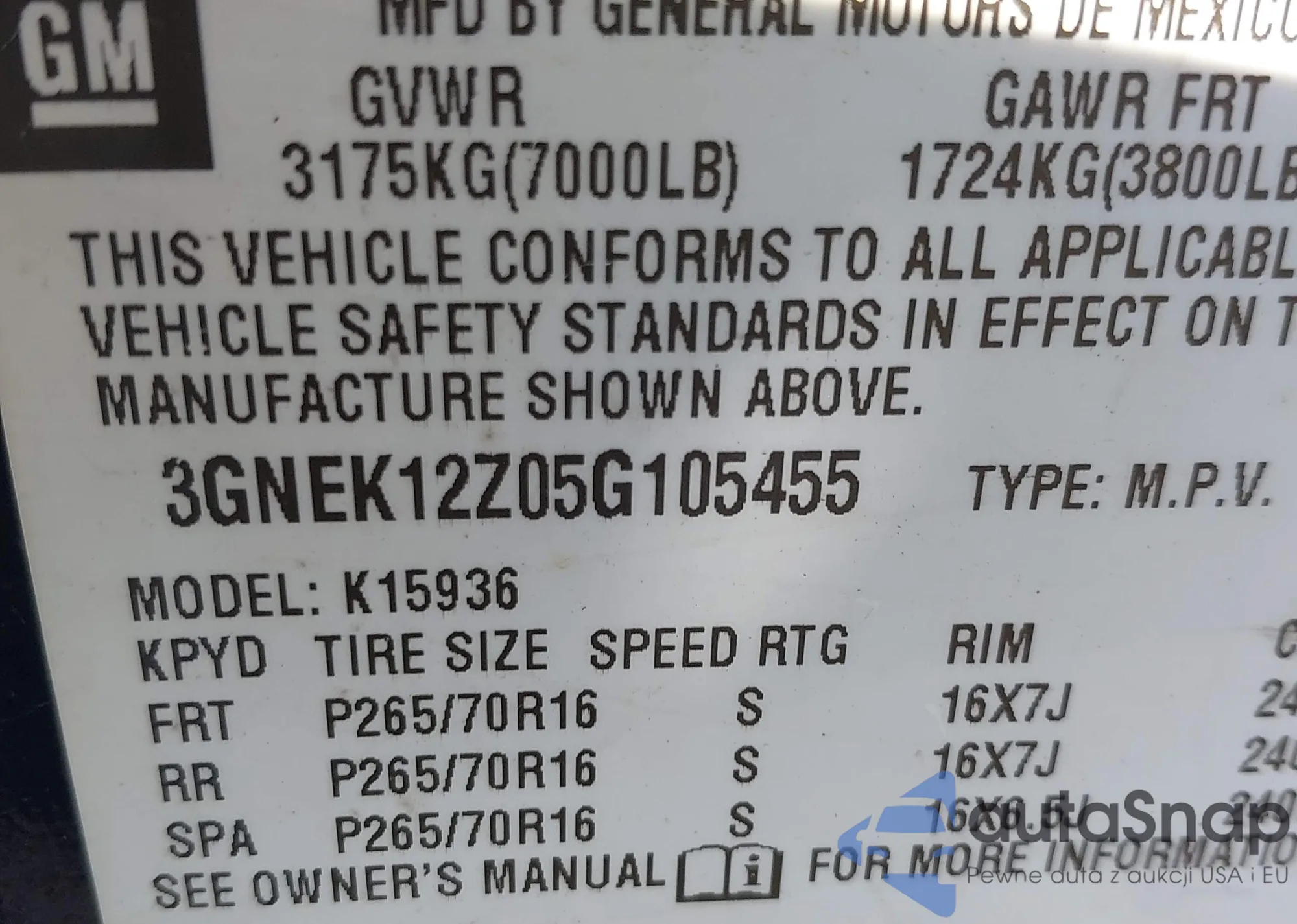 • VIN: 3GNEK12Z05G105455