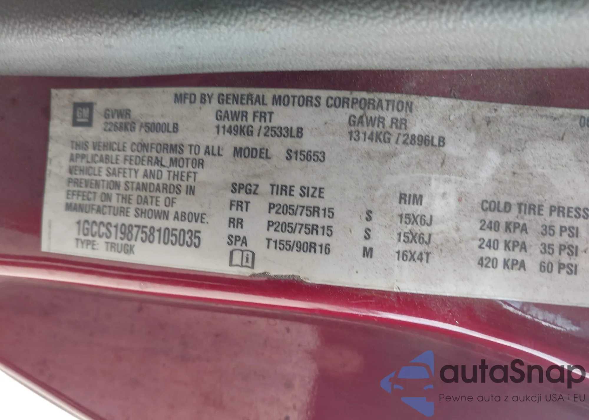 VIN: 1GCCS198758105035