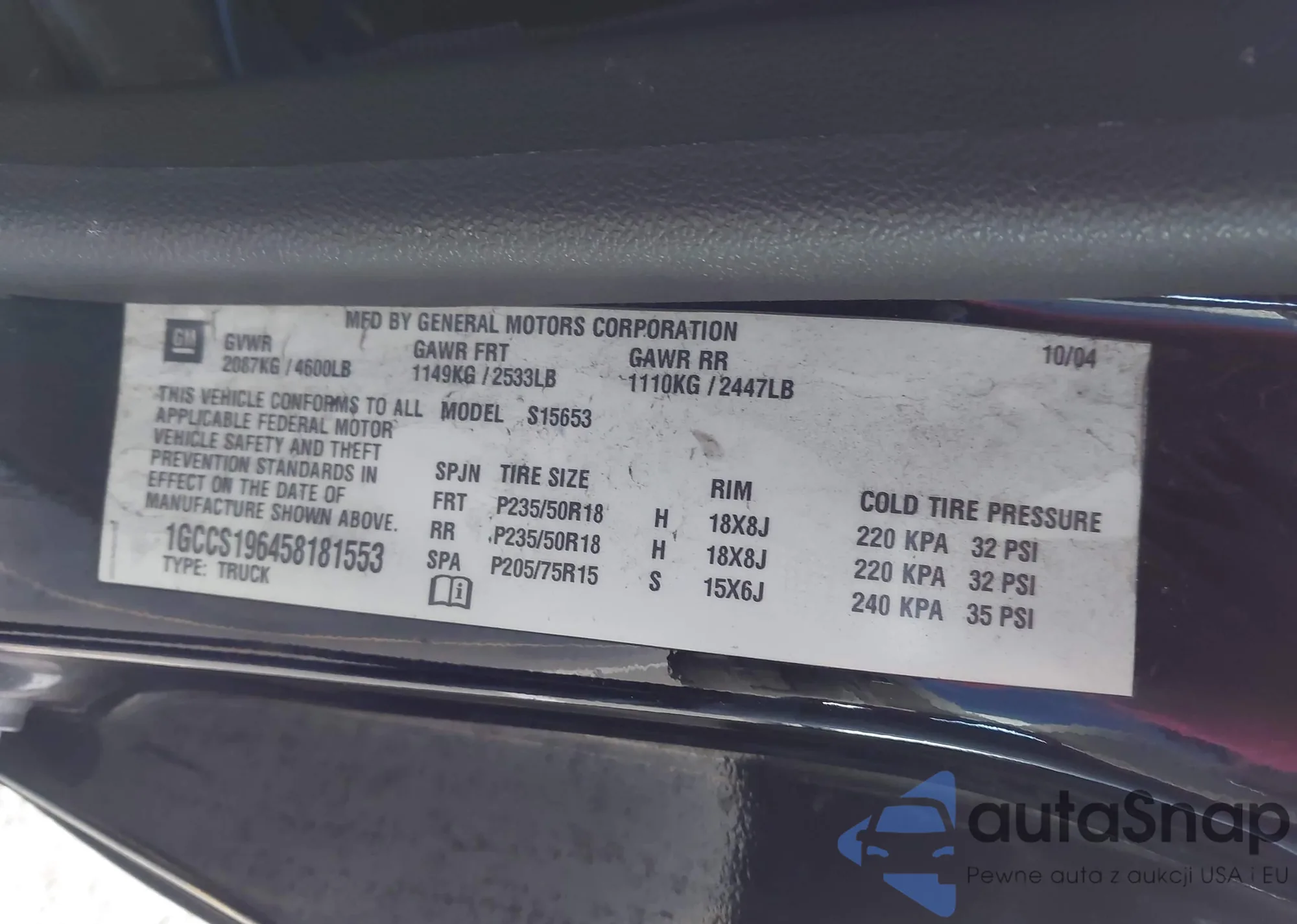 VIN: 1GCCS196458181553