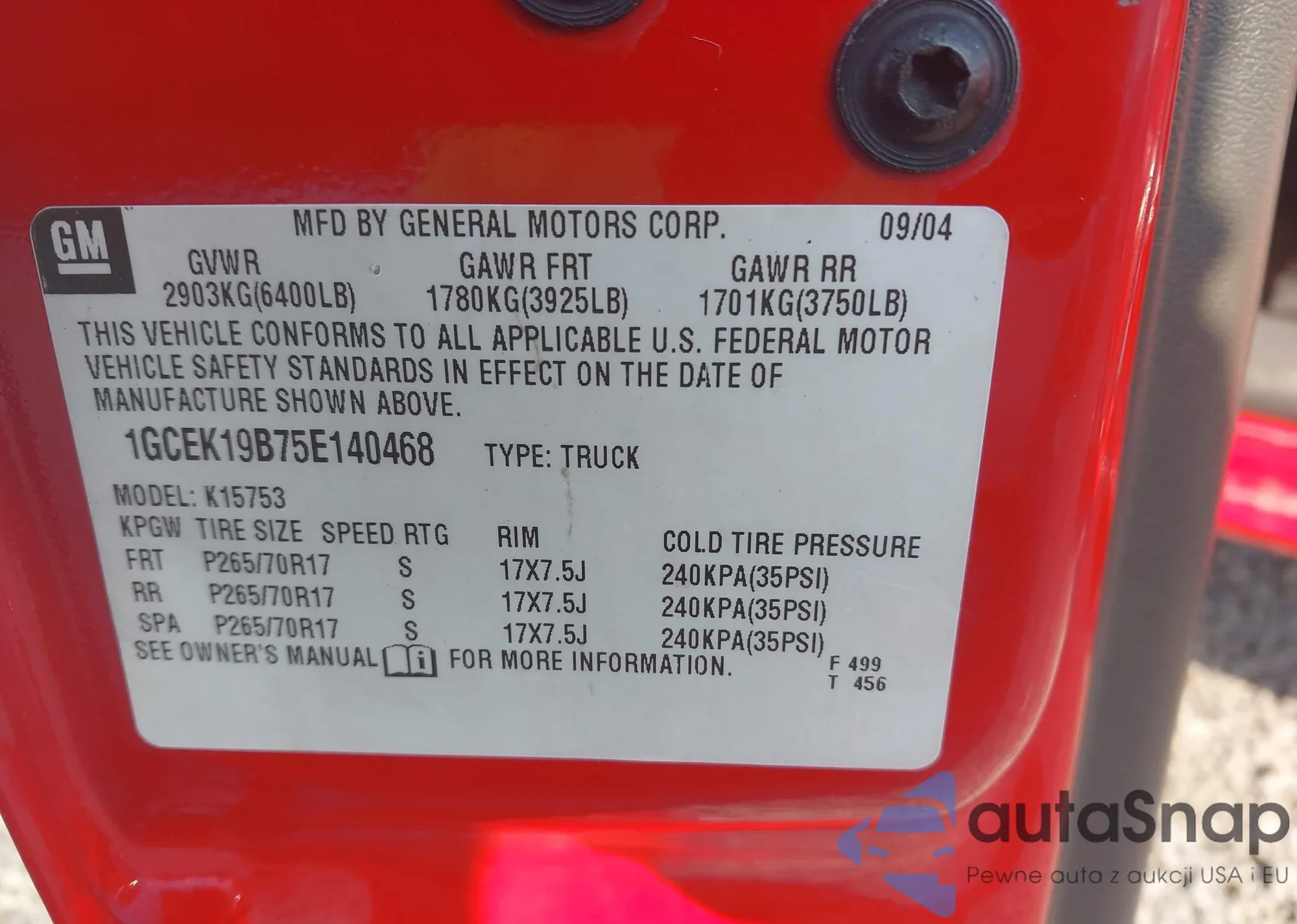 VIN: 1GCEK19B75E140468