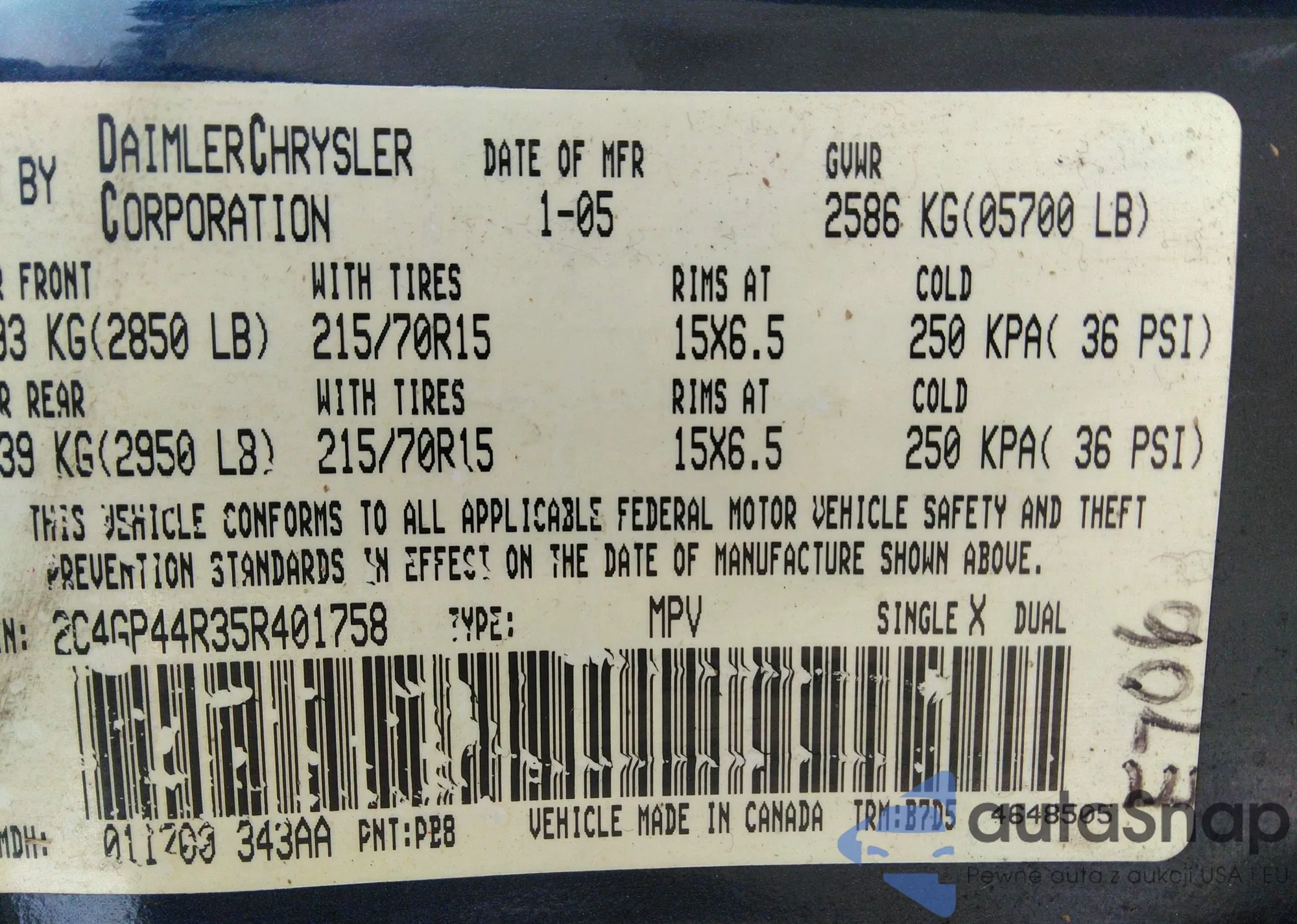 VIN: 2C4GP44R35R401758