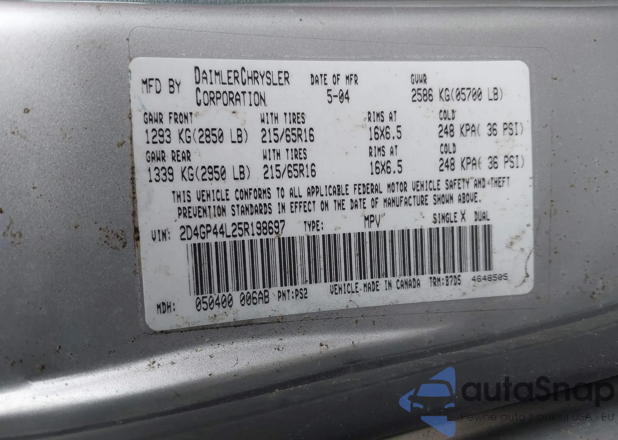 • VIN: 2C4GP44R85R333988