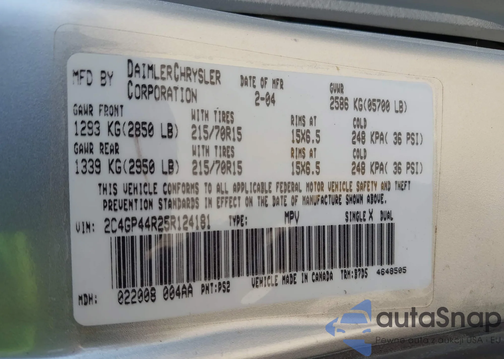 VIN: 2C4GP44R25R124181