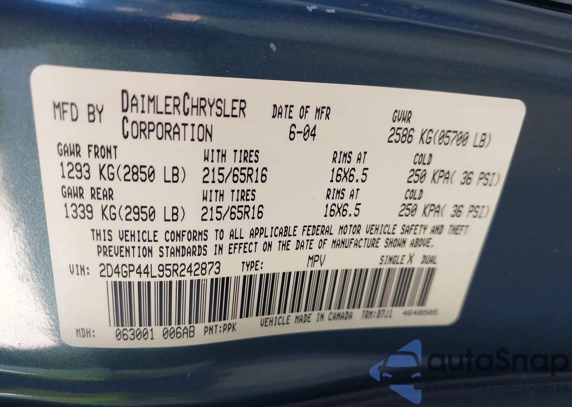 VIN: 2D4GP44L95R242873