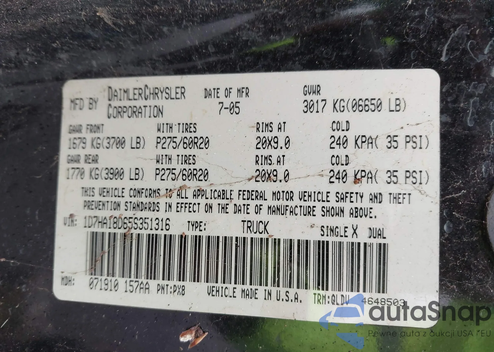 VIN: 1D7HA18D65S351316