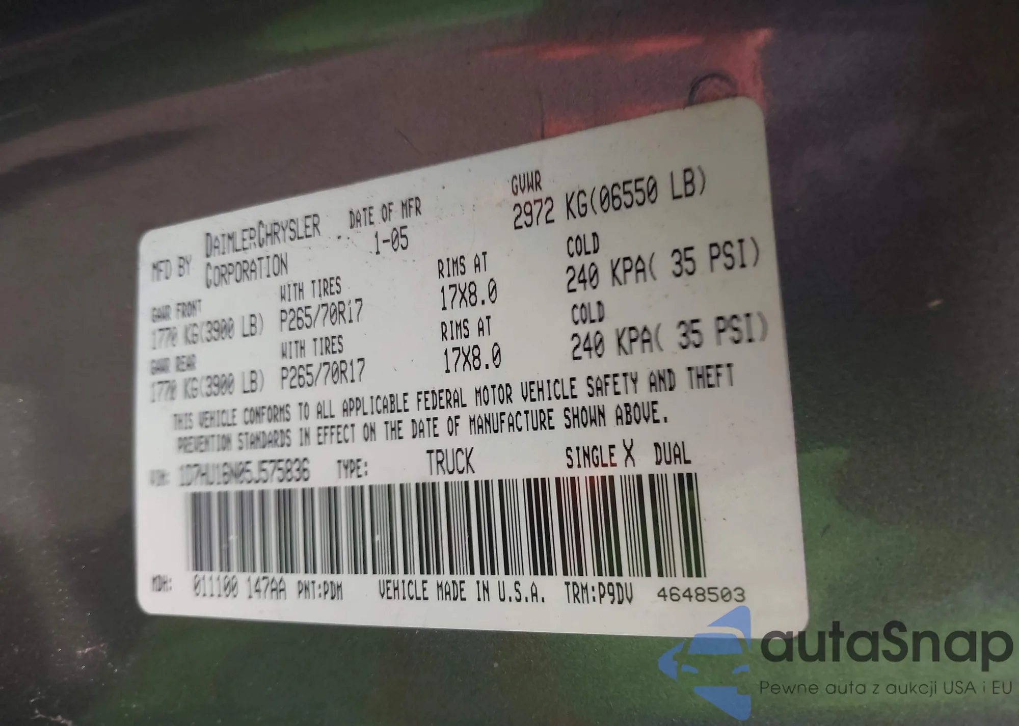 VIN: 1D7HU16N05J575836