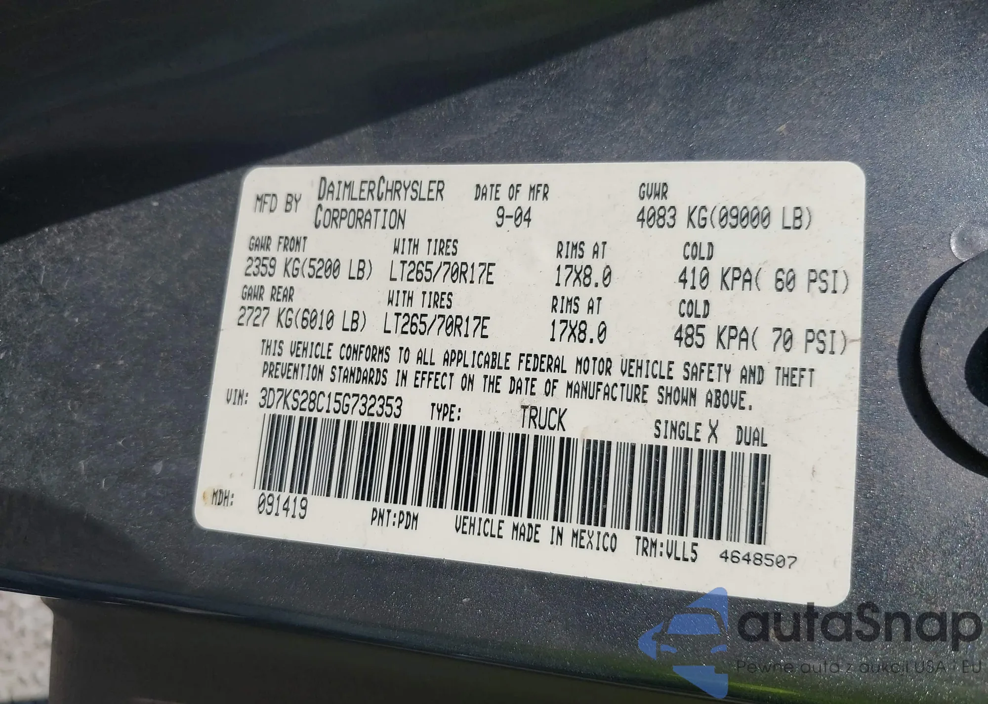 • VIN: 3D7KS28C15G732353