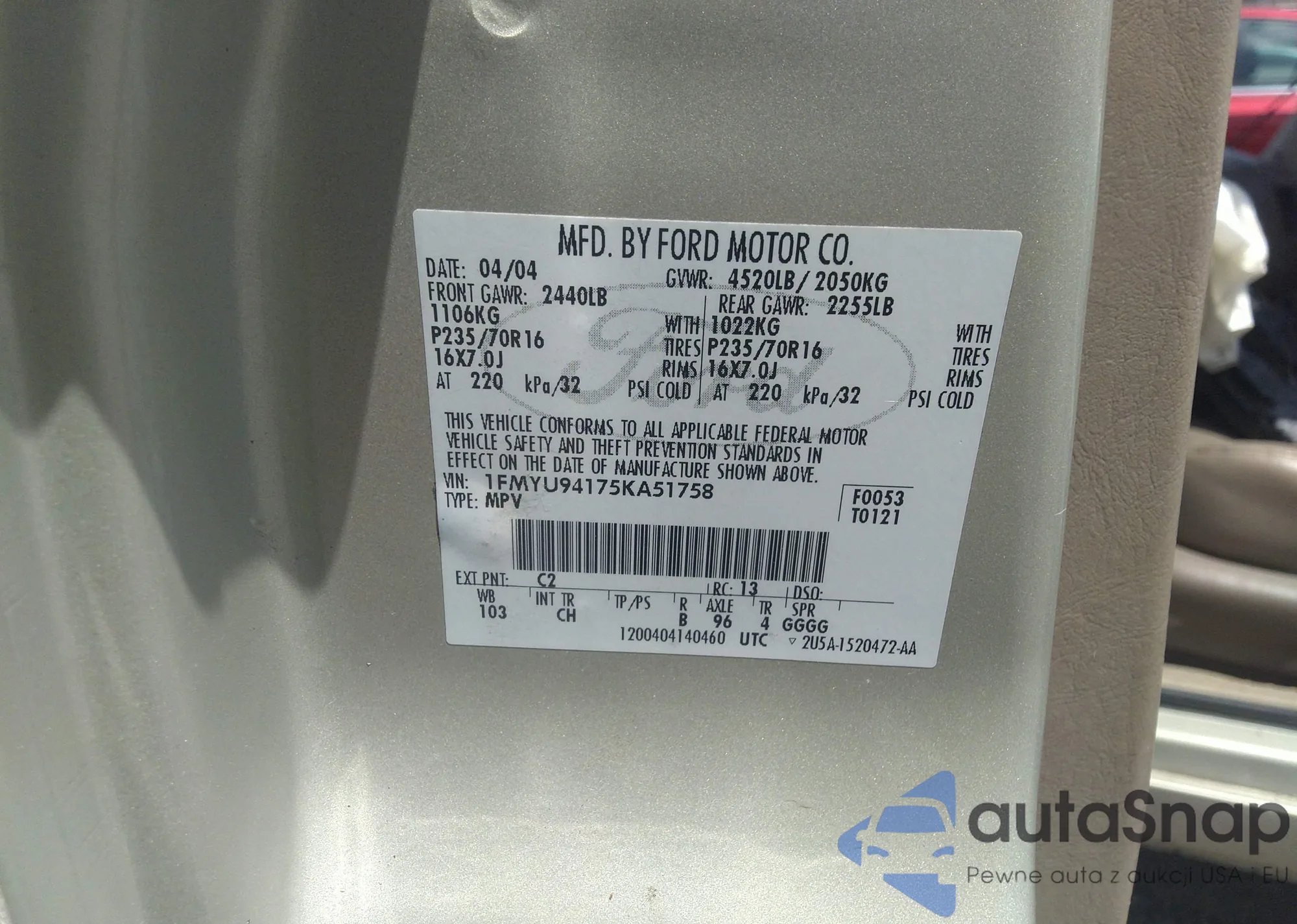 VIN: 1FMYU94175KA51758