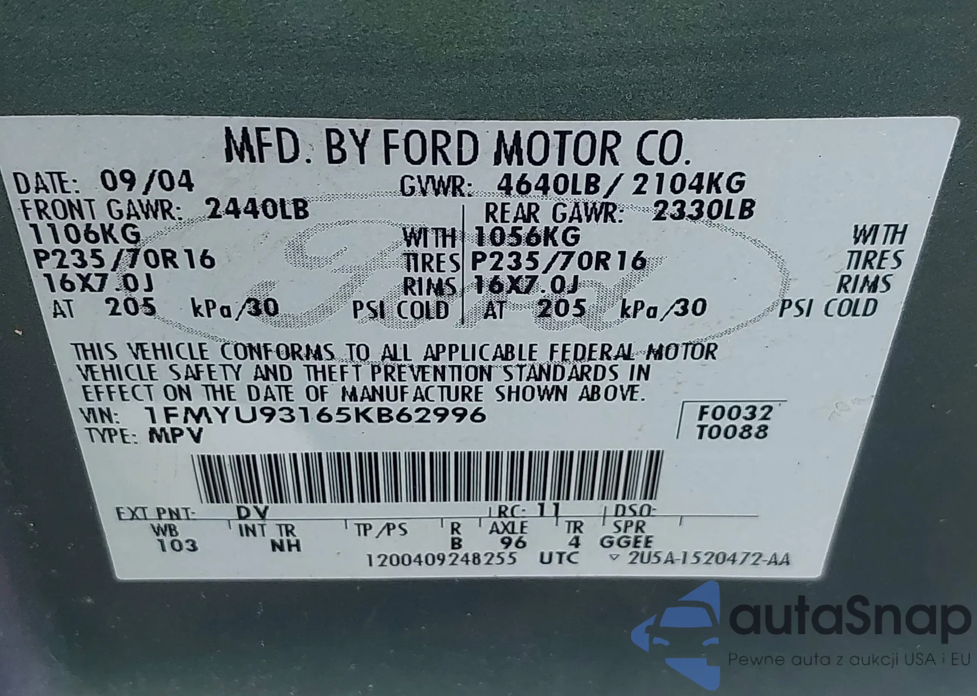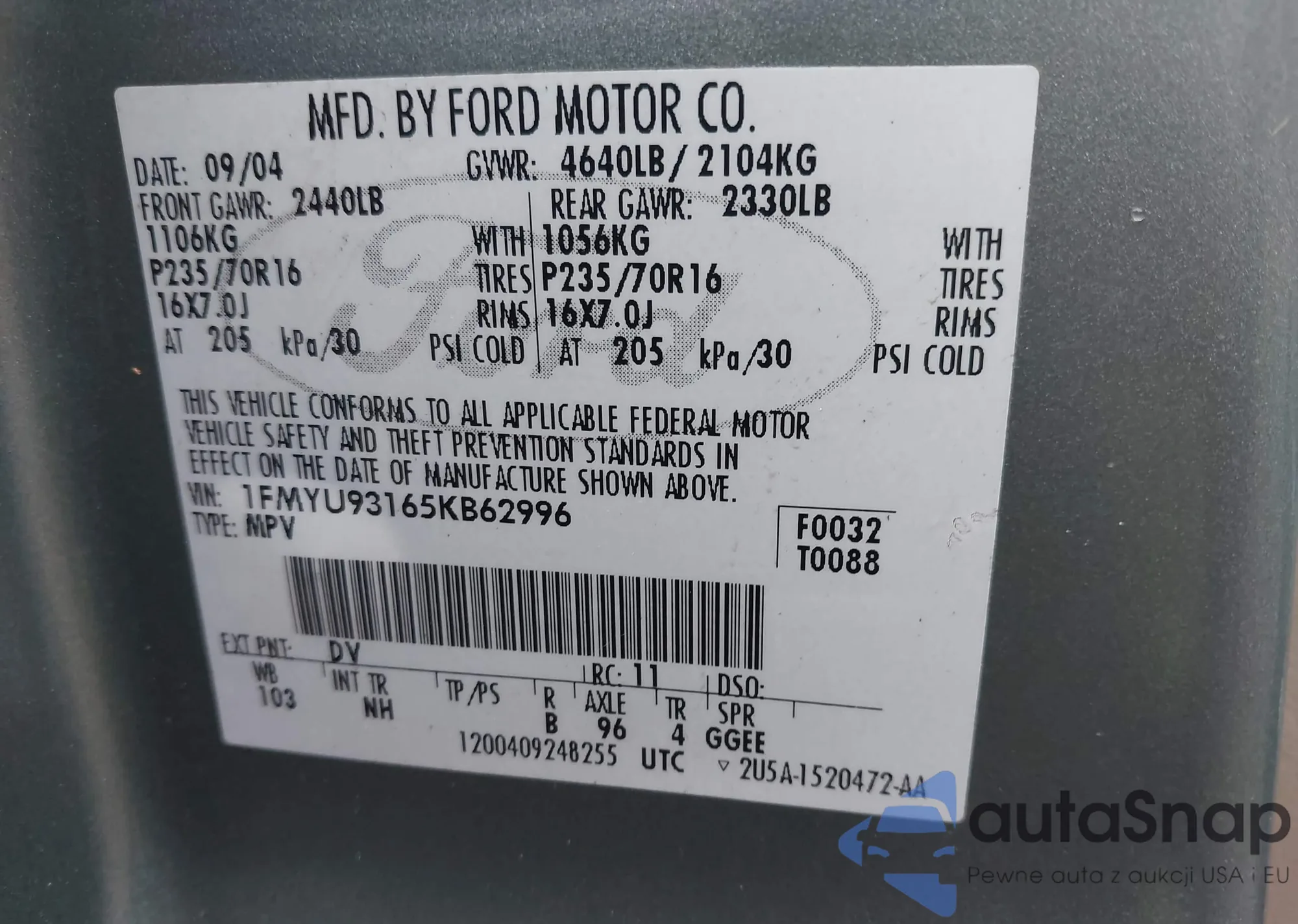 Автомобиль Ford Escape 2005 (VIN 1FMYU93165KB62996) ранее не участвовал в торгах. Документы чистые, пробег соответствует или ниже среднего по рынку. Продаётся страховой компанией — рекомендуем покупку. Доставка в порт займет около 6–8 недель.