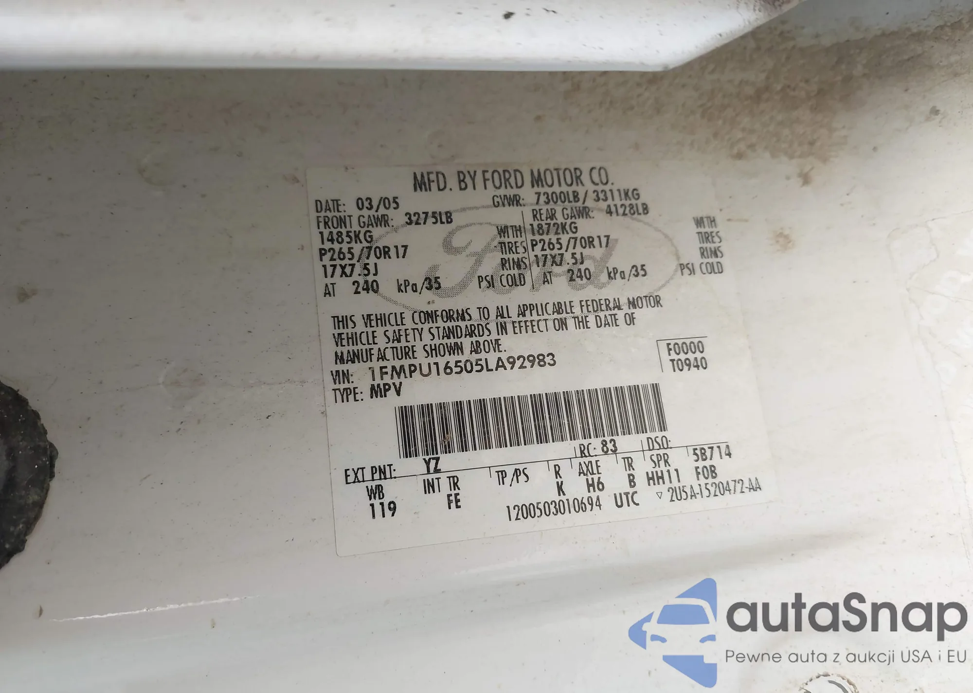 VIN: 1FMPU16505LA92983