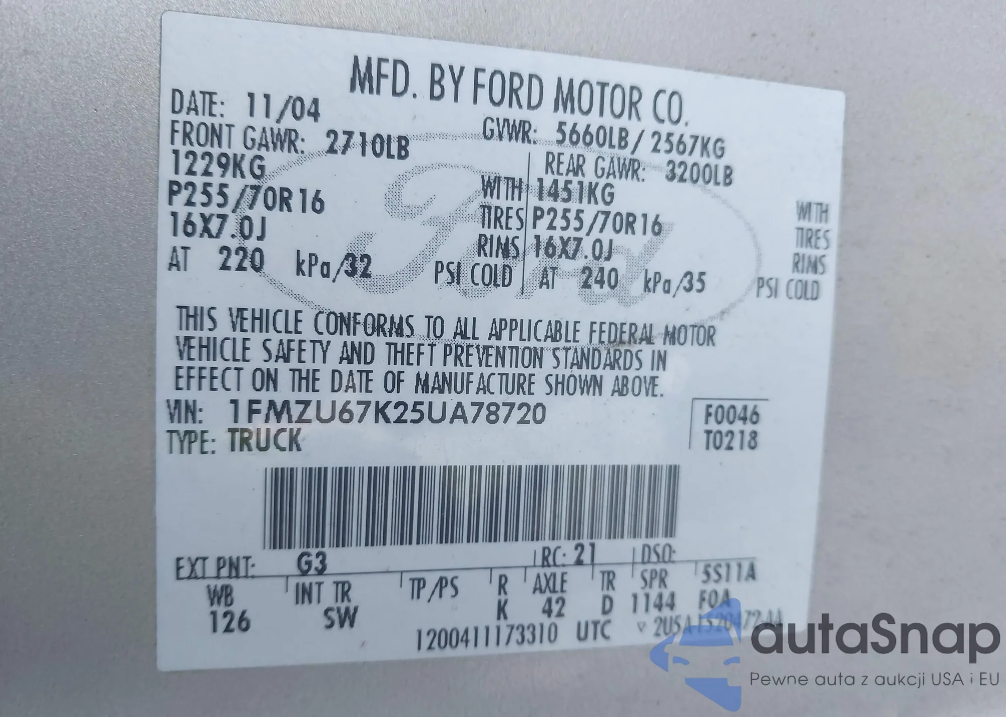 Автомобиль Ford Explorer Sport Trac 2005 (VIN 1FMZU67K25UA78720) продаётся непроверенным продавцом. Рекомендуем проверить отчет Carfax и подтвердить возможность регистрации перед покупкой.
