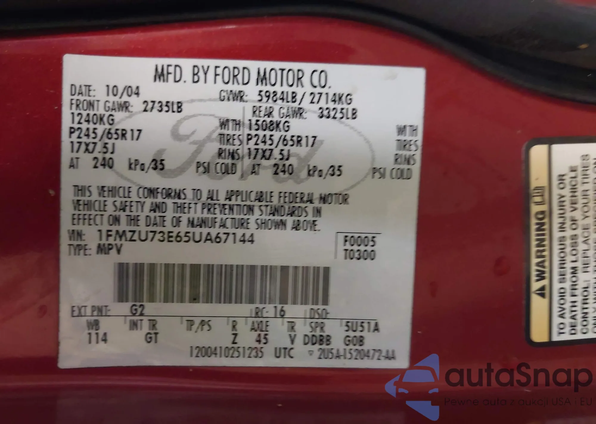 VIN: 1FMZU73E65UA67144