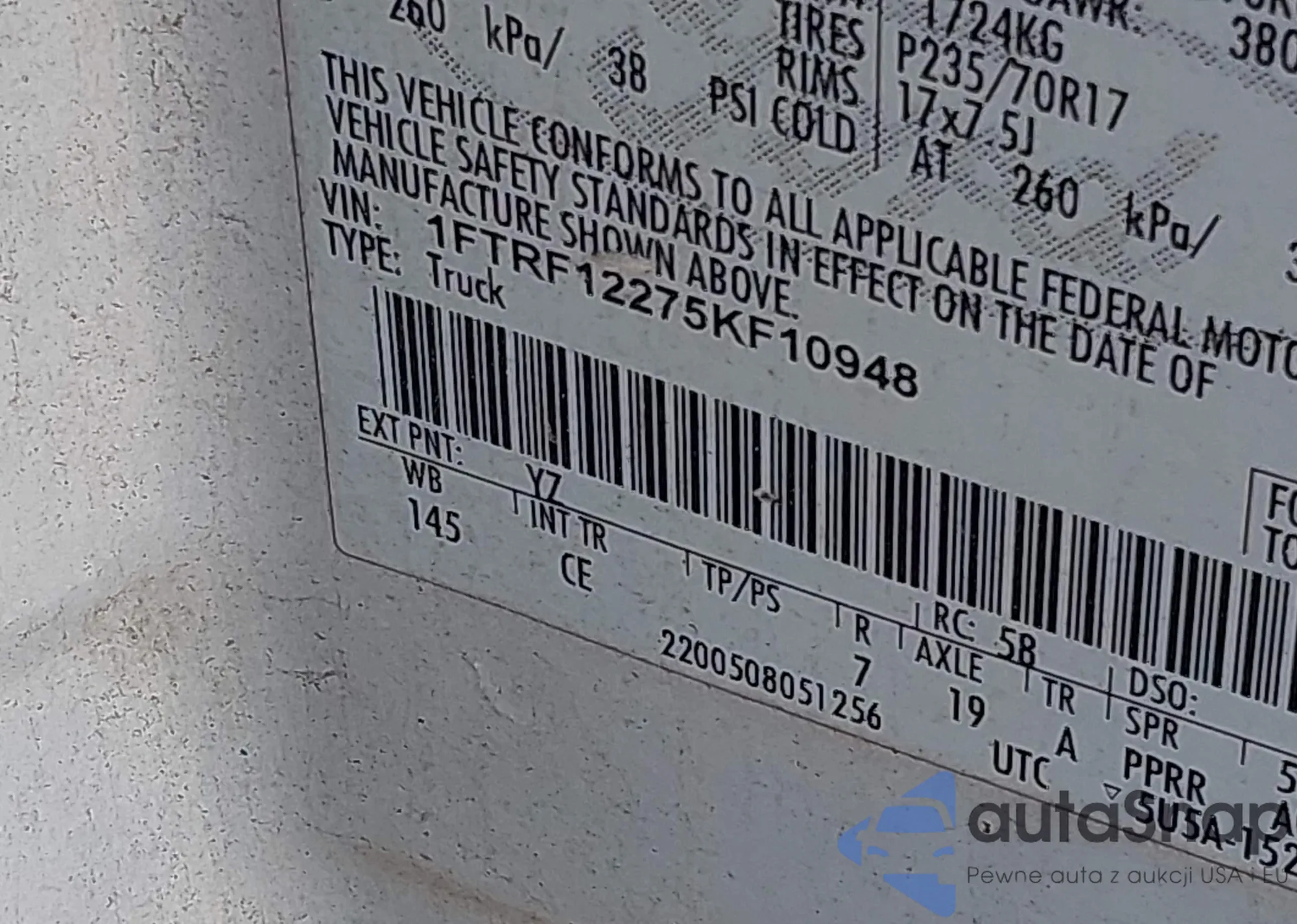 VIN: 1FTRF12275KF10948