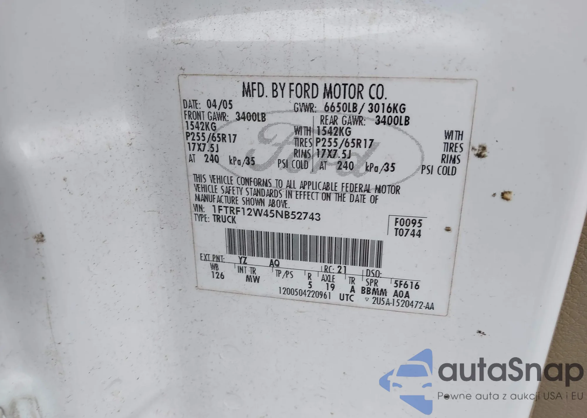 • VIN: 1FTRF12W45NB52743