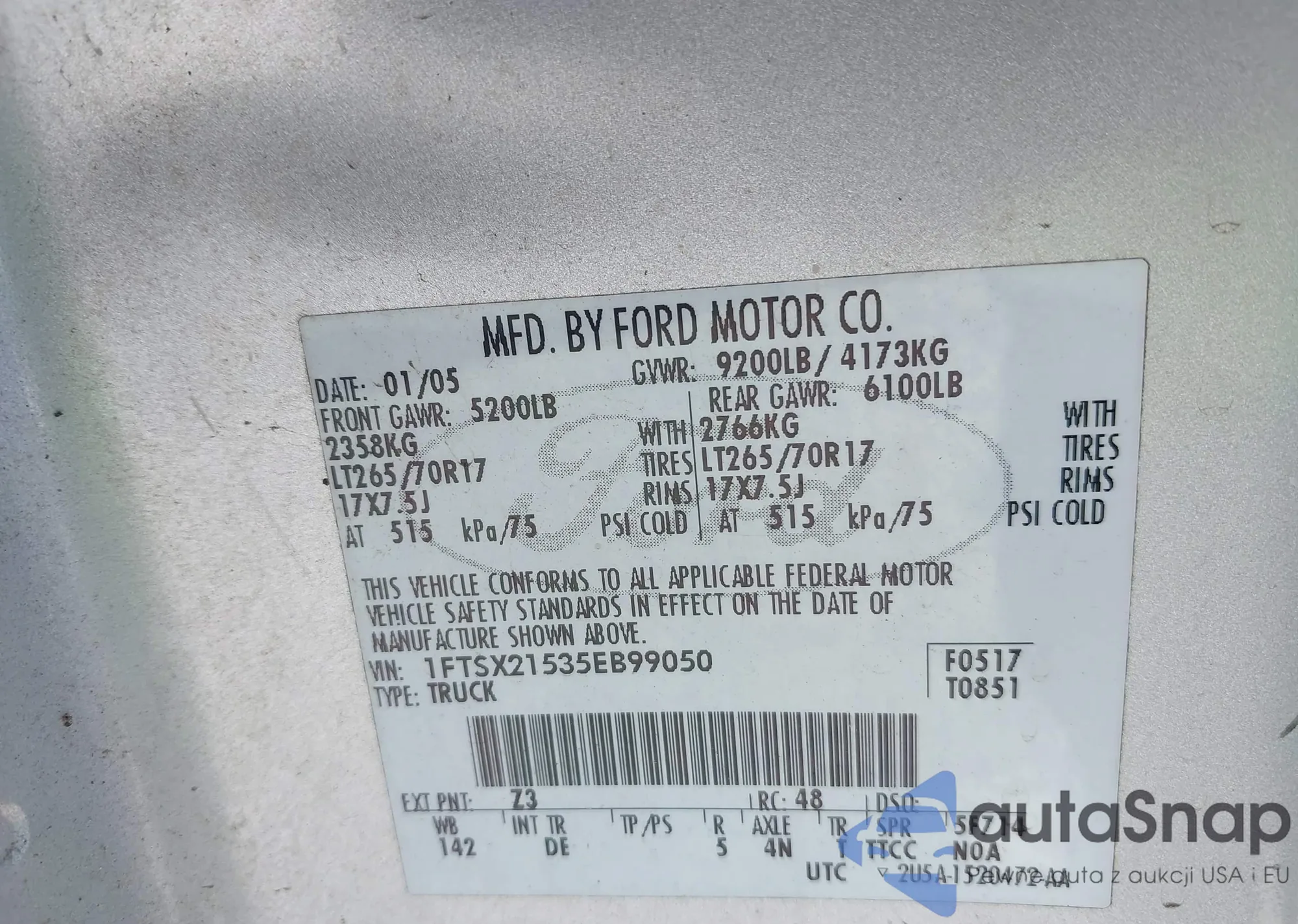 VIN: 1FTSX21535EB99050