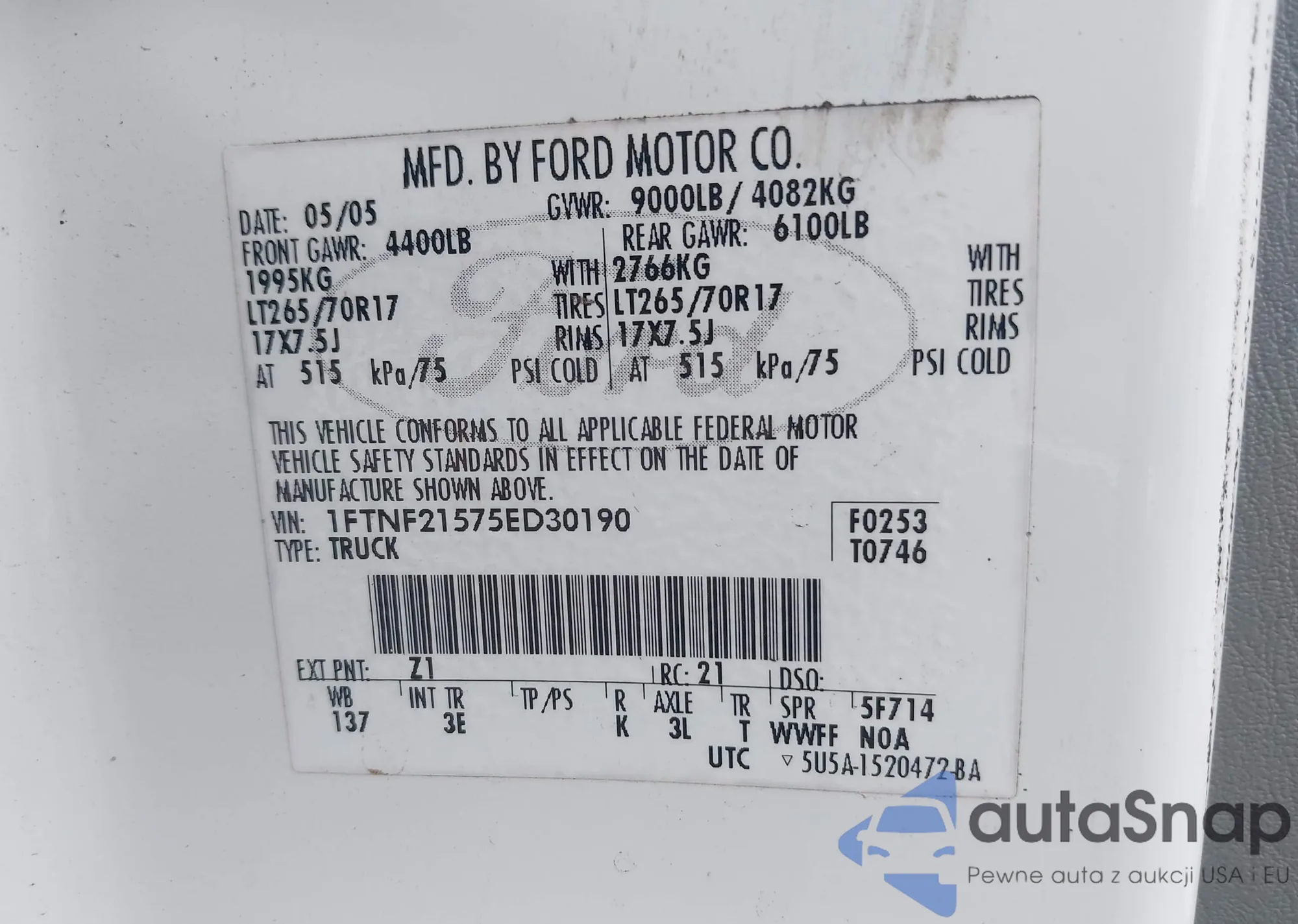 VIN: 1FTNF21575ED30190