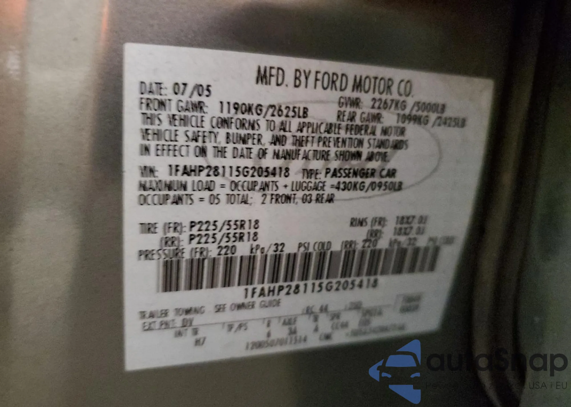 VIN: 1FAHP28115G205418