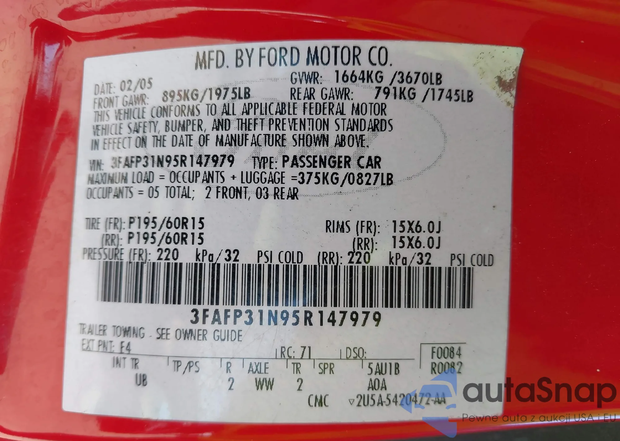 VIN: 3FAFP31N95R147979