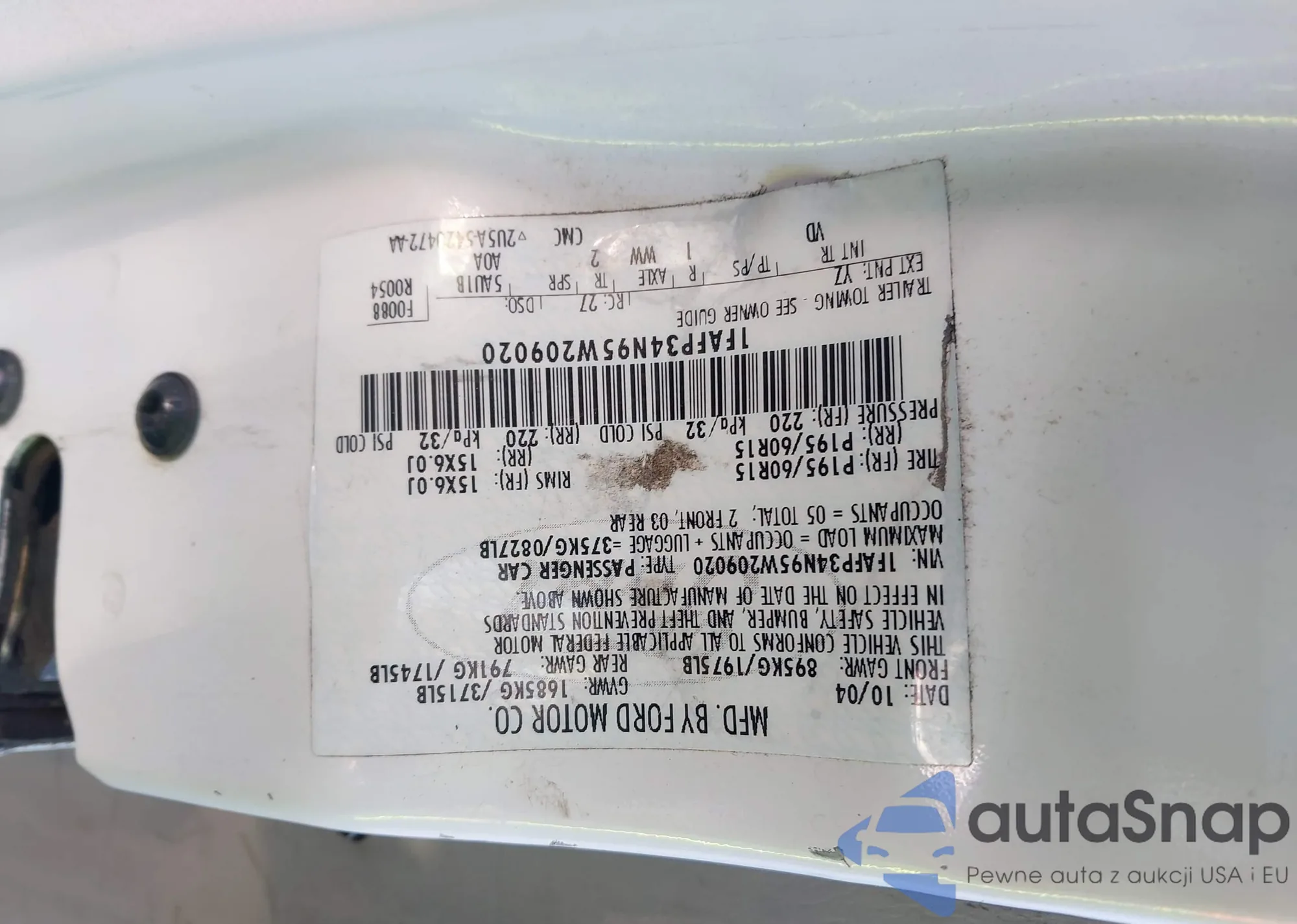 Автомобиль Ford Focus 2005 (VIN 1FAFP34N95W209020) ранее не участвовал в торгах. Документы чистые, пробег соответствует или ниже среднего по рынку. Продаётся страховой компанией — рекомендуем покупку. Доставка в порт займет около 6–8 недель.